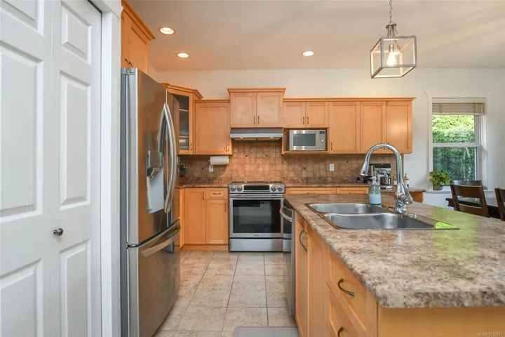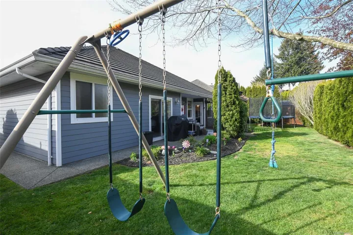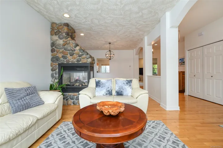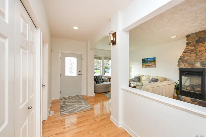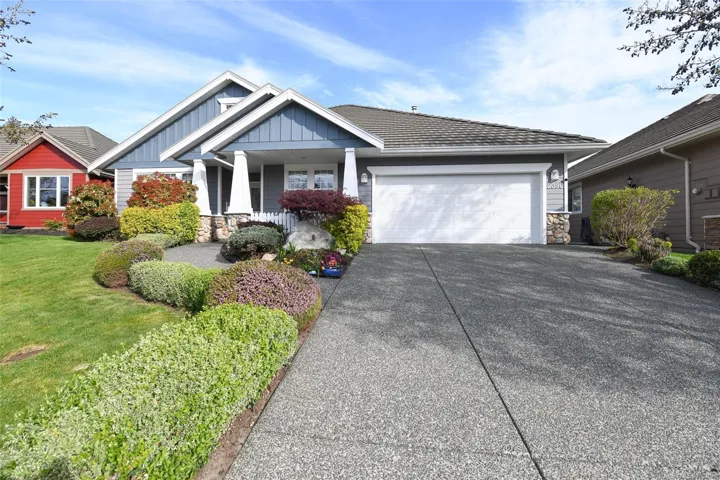 Elegant 1,817 sqft 3 bed/2 bath rancher in the prestigious Crown Isle community. Thoughtfully designed with a bright, spacious layout, featuring separate living & dining rooms anchored by a striking three-sided gas fireplace. The kitchen is beautifully appointed with maple shaker cabinetry, stainless appliances, a generous island with seating & a sun-filled breakfast nook opening to a covered deck for seamless indoor-outdoor living. The adjoining family room offers a relaxed yet refined gathering space. The primary suite is a private retreat with a walk-in closet, 4-piece ensuite with deep soaker tub & separate shower & direct access to the ultra private & fully fenced backyard. Freshly painted with birch hardwood, heat pump & tile roof. Features include: double garage, ample storage throughout & low-maintenance landscaping designed for effortless West Coast living. perfect for retirees or downsizers. Ideally located minutes to shopping, parks, trails & downtown Comox and Courtenay.