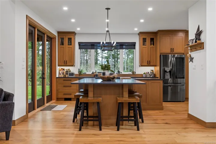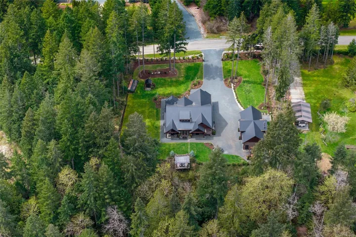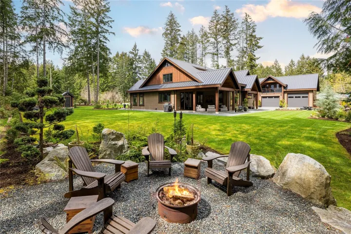 EXTRAORDINARY ACREAGE RETREAT ON 2+ ACRES ~ Set on over 2 acres of park-like grounds, this stunning property offers privacy, serenity, and exceptional craftsmanship. A gentle creek winds through the land, creating a peaceful, natural setting. The custom-built home features soaring ceilings, expansive windows, and a bright open-concept layout designed for comfortable living and entertaining. The well-appointed kitchen flows seamlessly into the main living space, while the primary suite offers a private retreat. Additional bedrooms and flexible space provide room for family or guests. Enjoy outdoor living with a covered deck, firepit, gazebo, and a private path to a swimming hole and nearby stream. A detached shop with a 2-storey suite adds incredible versatility for guests, income, or workspace. A rare lifestyle property – photos do not do this masterpiece justice.