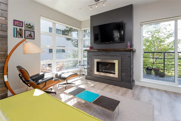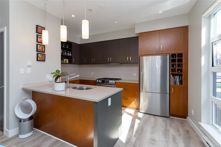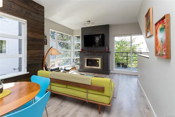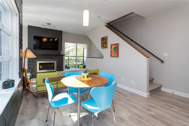 You’ll love this modern and sophisticated 3-level townhome tucked away on a quiet street on the cusp of downtown. On the main level you’ll find the entryway, a workspace/den, a 4pc bath, a bedroom w/good sized closet, and access to the single-car garage which has enough space for storage and a small workshop. On the second level is the bright and spacious living room with great light from the south and east, dining area, kitchen, and laundry. On the third level is the primary bedroom, walk-in closet, and a 4pc “Jack and Jill” ensuite, and stairs that lead up to a wonderfully spacious and private rooftop deck. This corner-unit has the most windows of any unit in the complex so there’s great light throughout. New high-end laminate floors are extremely durable. Easy 10 min walk to downtown past the lovely shops of Fort St, and easy walk to Cook St Village and the Dallas Rd waterfront. The property is neat as a pin and ready for it’s next lucky owner. Call your agent to arrange a showing.
