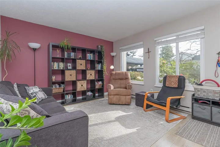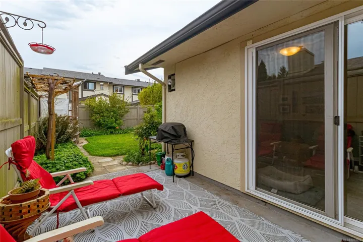 Bright and inviting 3 bedroom, 2 bathroom townhome in an unbeatable location. Just a short walk to UVIC, Tuscany Village, elementary, middle and high schools including French immersion plus steps to major transit routes. The thoughtfully designed layout offers a sun-filled living room at the front and a separate, cozy family room at the back complete with a fireplace. The updated kitchen features modern appliances and flows seamlessly into a spacious dining area, ideal for everyday living and entertaining. Step outside to your private, fenced backyard with a sunny patio, garden space, grape vine and a versatile outdoor studio. Up you’ll find generously sized bedrooms, including a walk-in closet. An easily accessible attic provides excellent storage or the perfect play space for kids. This home also includes two parking stalls, a carport with enclosed storage, and is part of a well-managed, self-run strata with low fees, a recently replaced roof, and several thoughtful upgrades.