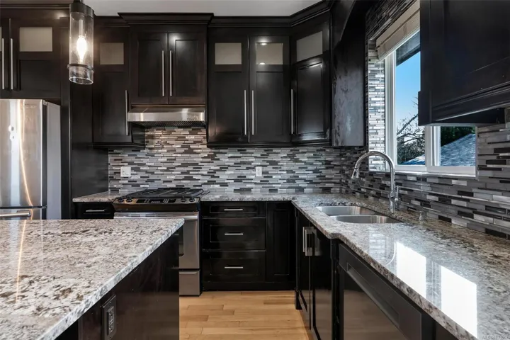 A truly rare find! This high-end finished home settled in a popular and convenient Saanich neighbourhood. Bright open-concept main level with vaulted ceilings, hardwood floors, and spacious kitchen featuring granite countertops, marble tile, and a large island. Main level offers 3 bedrooms including a primary suite with ensuite and walk-in closet. Two decks plus both gas and high-end electric fireplaces. Excellent income potential with multiple suites, 3 separate meters and separate laundries. Rare 2012-built home with additional detached studio/garden suite. Parking right in front. Close to Uptown, Tillicum Centre and Mayfair Shopping Centre. Must see!