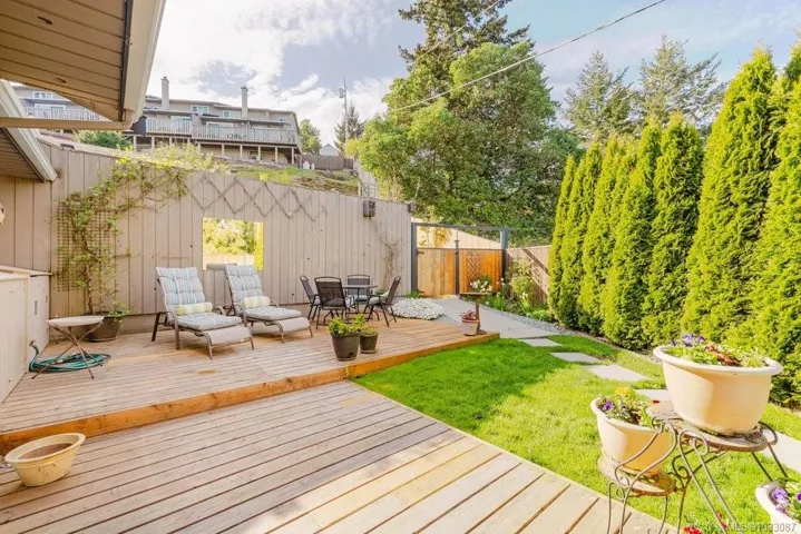 OH Sat & Sun. Looking to downsize in comfort or start your family in a safe, quiet environment? This rare sunny side end-unit at Ocean Pacifica is a standout choice. Also rarely do townhomes offer flat, low maintenance and fully fenced yard, with spacious deck providing an elevated spot to enjoy the pleasant valley View. Plus a heaven for BBQ, children and furry friends. Inside, the 2bed 3bath home features sun-drenched layout, 2023 heat pump, 2022 windows,2025 hot water tank, laminate flooring. Cozy living room with propane fireplace and patio door to peaceful backyard. A guest bathroom on main. Generous size main bedroom with 2 piece Ensuite. Carport with storage and drive way parking. This well-run, self-managed fully fenced complex bring you a true community feel and peace of mind. Come to see this tranquility oasis.