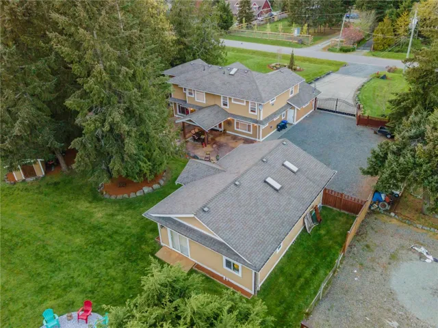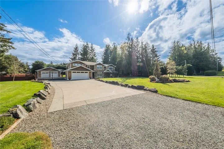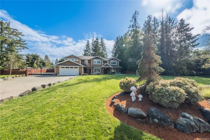 Properties like this rarely come to market. This beautifully maintained 5-bedroom, 4-bathroom home sits on a private, 1-acre lot in Cedar, offering a functional family layout designed for long-term living. The main floor features open-concept living, a grand entry, 2 natural gas fireplaces, and a bedroom with full bath. Upstairs includes spacious bedrooms, a large primary suite with walk-in closet and ensuite, plus a second ensuite bedroom—perfect for guests or family. The fully fenced rear yard with metal gate offers privacy, mature landscaping, fruit trees, and a patio with fountain for outdoor enjoyment. Impressive 1,100+ sq.ft. workshop with 11 ft ceilings, power, and plumbing. Double garage, ample parking, and just steps to the Cedar Farmers Market. Explore the 3D tour. Floor plan available.