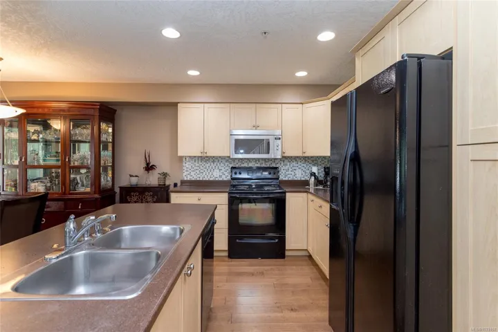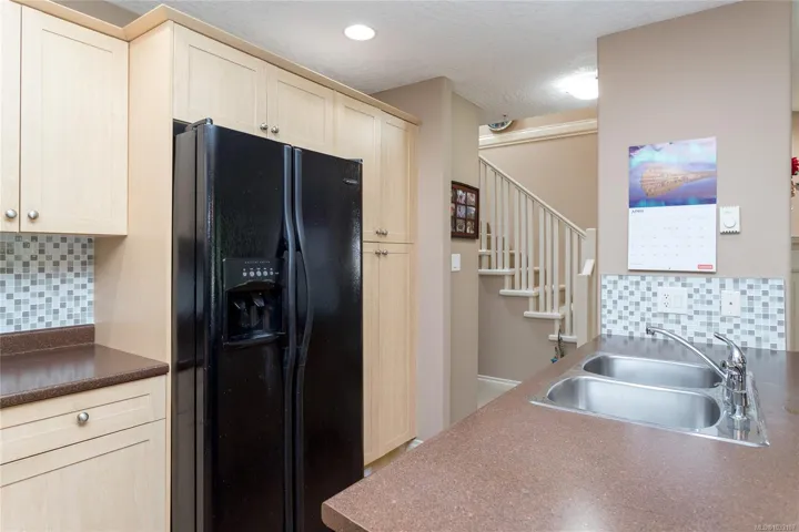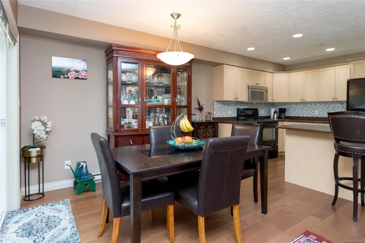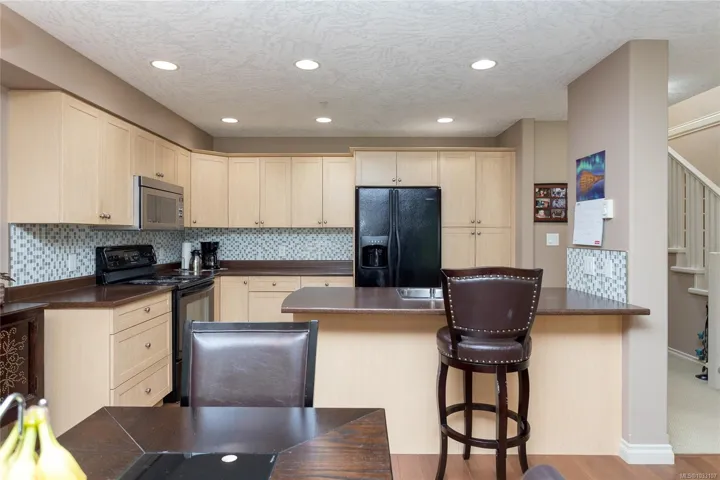 Creekside Glen is a small enclave of 14 townhouse tucked away in a quiet and private rural location backing onto Millstream Creek, close to Kelvin Grove. Beautiful setting to call home. Spacious 3 level townhouse at just over 2100 sq/ft, 4 bedrooms, 4 bathrooms, main floor with open concept living, kitchen and eating bar, dining area and living room with wood floors and a cozy gas F/P, all leading to a private rear deck over looking the greenspace. Upstairs has 3 spacious bedrooms, main bathroom and a 4 piece ensuite and walk-in closet in Primary bedroom. Lowest level has a large family room, 4th bedroom, full bathroom, den and lots of storage plus a walk-out lower private rear patio area. Single garage for parking. Well run complex. Great central location, surrounded by nature, minutes to Thetis Lake, Galloping goose Trail with quick access to the highway, 10 minutes to Costco, 30 minutes to downtown.