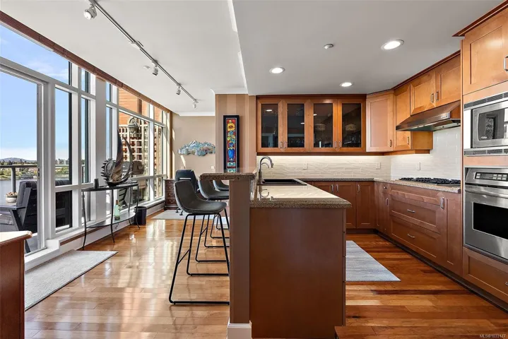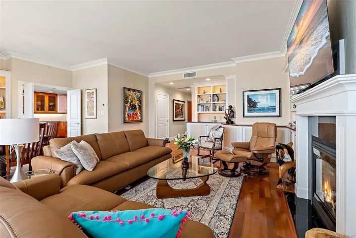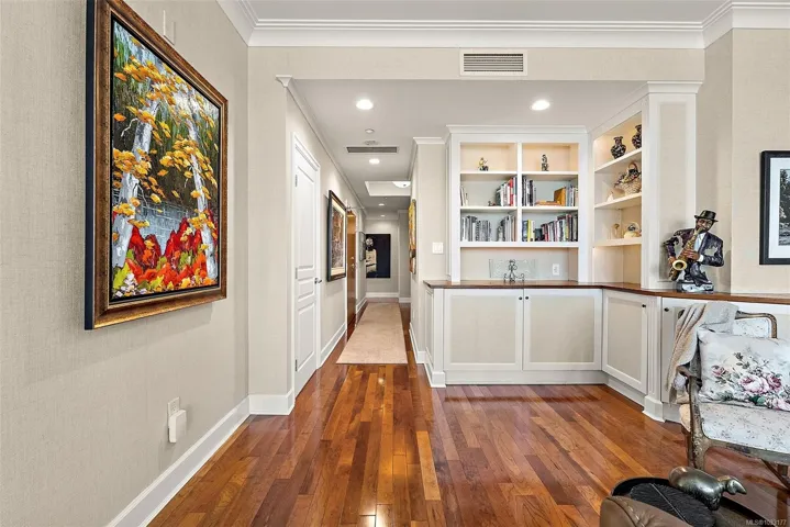 Located in the Prestigious SHOAL POINT, you will find this stunning WEST FACING 2 bedroom 3 bathroom 1680+ square foot luxury home. Enjoy beautiful OCEAN VIEWS and summer sunsets on the expansive 17×10 balcony, or morning coffee from your private SOUTH/EAST FACING Juliet balcony. This condominium has a distinctive “house” feeling with a fantastic floor plan separating the bedrooms from the living area & kitchen. Features include 2 PARKING STALLS, beautiful hardwood floors, many CUSTOM BUILT INS and display shelving in the living room with a gas FP, California shutters, Maple Kitchen cabinets and granite counters, SS appliances and a temperature controlled WINE ROOM. Both bedrooms have their own ensuite. Building Amenities include a CONCIERGE, POOL, GYM AND WORK SHOP. The location is considered one of the most sought after areas on the island and arguably, the world. Never will a building of this quality and magnitude be built again on Victoria’s inner Harbour.
