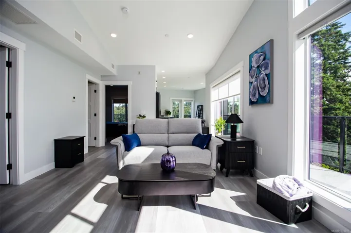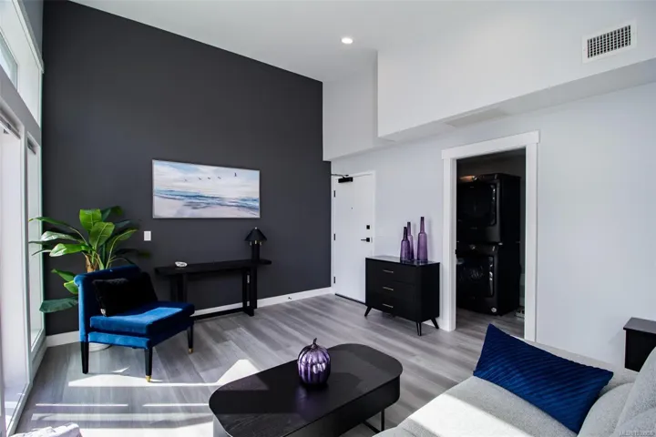This brand-new two-bedroom, one-bathroom condo offers a unique chance to enjoy close proximity to one of Nanaimo’s most sought-after lakes. Combining modern living with the charm of nature, creating an ideal balance for those seeking tranquility and convenience in a desirable location. As you step into this modern sanctuary, you are greeted by a naturally lit interior, thanks to expansive windows that fill the space with natural light. The heart of this home features a sleek kitchen equipped with state-of-the-art Samsung appliances, complemented by elegant quartz countertops and a matching quartz backsplash, blending functionality with style. This exceptional residence is conveniently located, offering easy access to shopping and various amenities, ensuring that comfort and convenience are always within reach. 1 underground parking stall incl with each unit. Pictures may not reflect the exact floorplan of the listed unit.