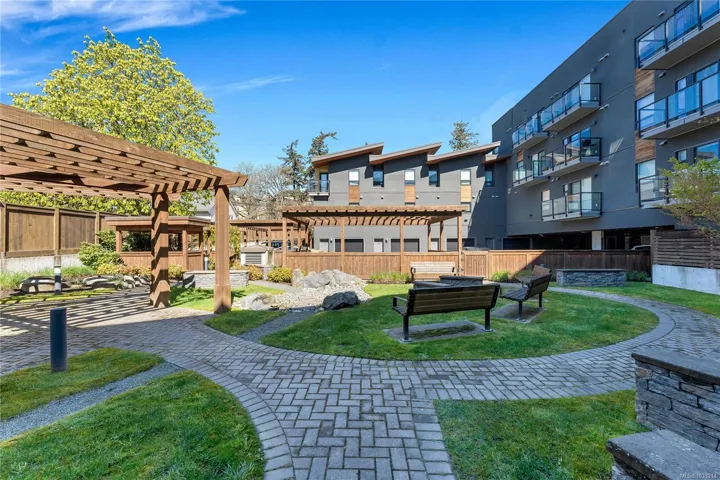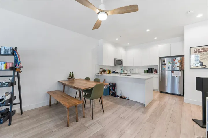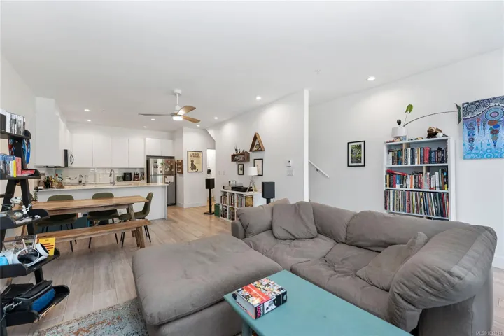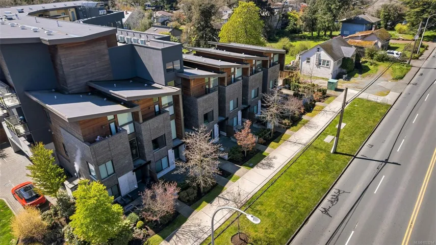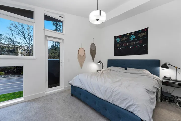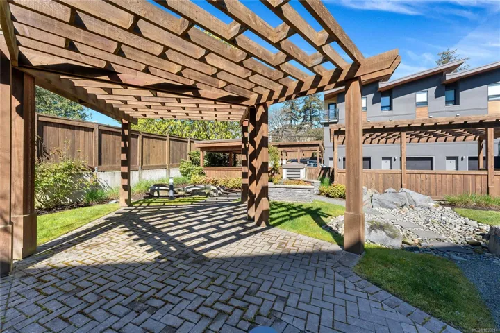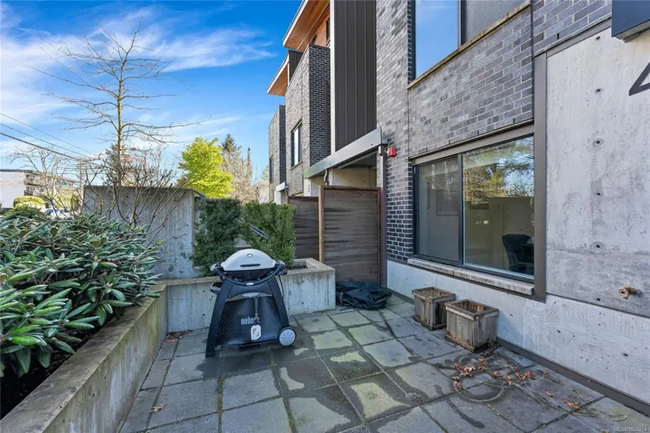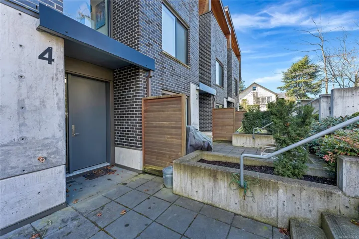 A rare offering in Saanich’s Built Green “Otto” development, Unit 4 stands out with TWO PARKING spots, a private garage with EV charger and an additional outdoor stall, plus a versatile three level floor plan that lives larger than expected. The private patio sets the tone, offering an inviting outdoor space for summer grilling and relaxed evenings. Inside, the open concept main level is anchored by a quartz peninsula that makes everyday living and entertaining feel effortless. Upstairs, the vaulted ceiling primary primary bedroom offers privacy and a sleek modern ensuite. Downstairs, the third bedroom adds real flexibility as a guest room, home office, studio, or premium student space near its own entry. With a high efficiency heat pump for year round comfort, Swan Lake steps away, UVic minutes from home, and the Galloping Goose providing a straight car-free ride downtown, this is smart, connected living with lasting value.