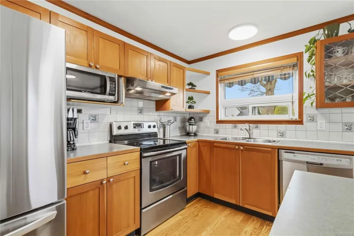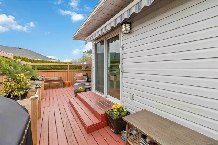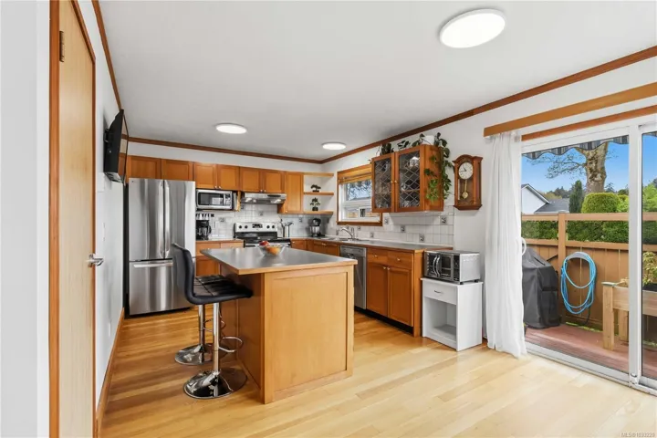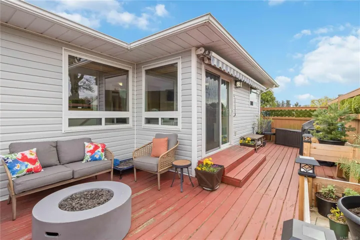 Open House Sat & Sun 1-3 pm Spacious End Unit 2 Bed + Den Townhome in desirable Oak Glen Estates with a brand new roof. This flexible floor plan offers large bedrooms and a full bath on each level. The vaulted entry features new hardwood flooring on the stairs and hardwood floors throughout kitchen/living/dinning room. Generous sized living spaces, updated bathrooms, den/flex space and a separate laundry room. The kitchen features a center island, pantry closet and stainless steel appliances, new fridge and overlooks the fenced patio backing on to common parkland. Private front entry with perennial gardens, oversized garage with storage and additional dedicated double parking space. This pet friendly development offers a clubhouse with games room, library, guest suite, and a proactive strata. Such a special place to call home surrounded by by nature, views of Christmas Hill yet close to shopping, amenities and schools.