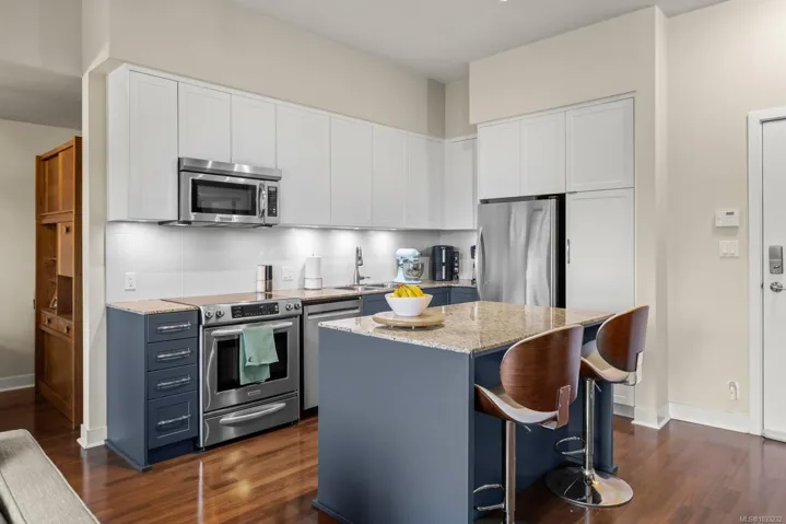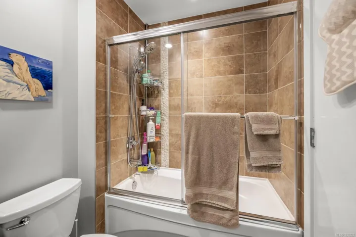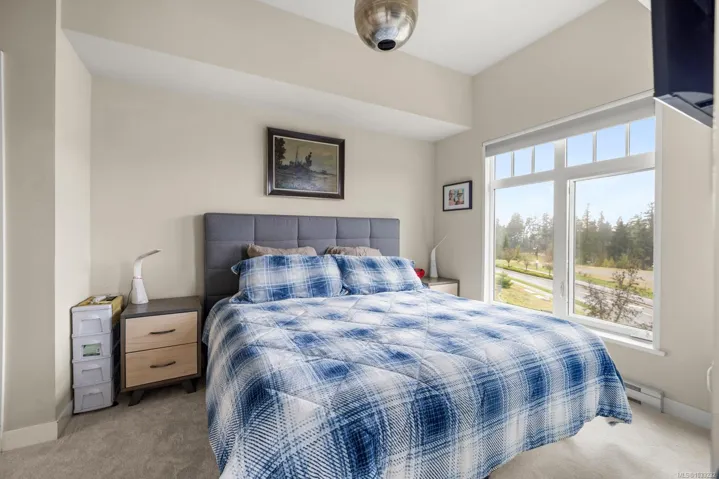 Top floor, two bedroom, two bathroom condo overlooking spectacular Mount Finlayson. This amazing home is tastefully updated and has a preferred floor plan, with master bedroom and second bedroom separation. Spacious kitchen with granite counters and stainless steel appliances. The living room is bright, and filled with natural light from the large windows and glass doors leading to the covered balcony. The main area is complete with a dining area big enough to easily accommodate the 6 person table currently in place. The master bedroom has his and her closets, along with a full ensuite bathroom. In-suite laundry, parking, and storage. A heat pump has been installed recently that will keep you at the most optimal temperature all year around. Enjoy all that Bear Mountain has to offer such as two world class golf courses, fitness center, year-round outdoor pool, tennis, Jack’s Place, and much more. It is all here for you!