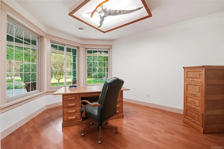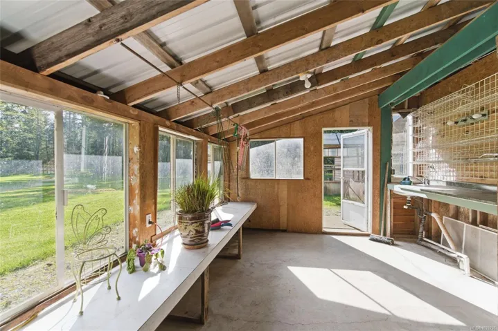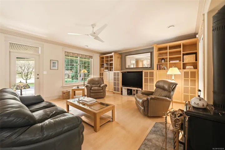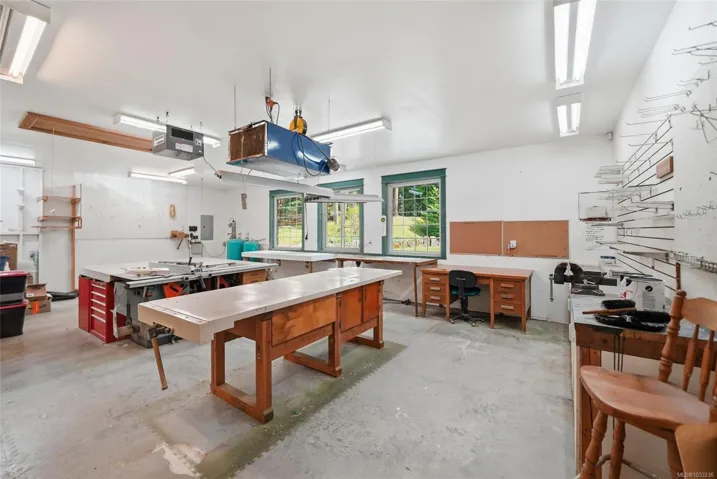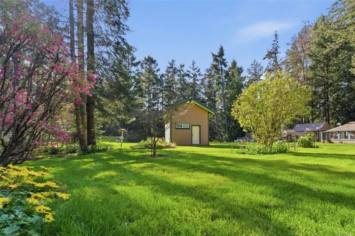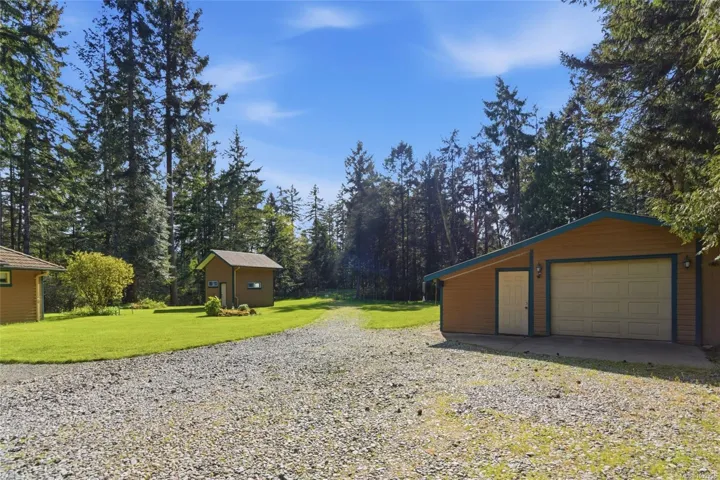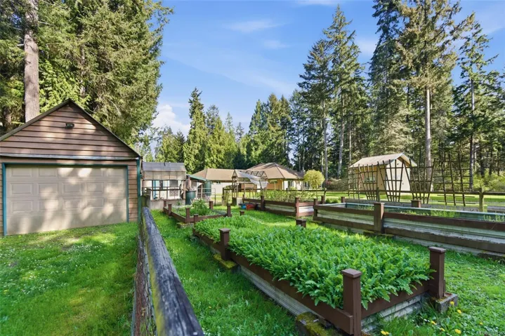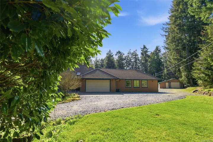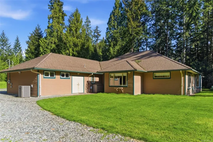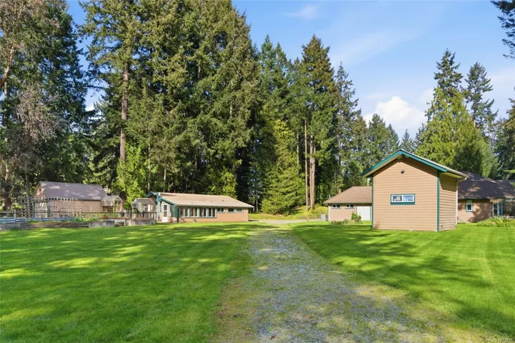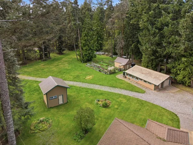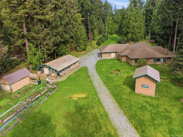 Private 5 acres property with a 31×24 workshop and a spacious 3 bedroom plus den rancher define this lovely landscaped acreage in sought-after Yellow Point. A gated entry welcomes you along a winding driveway bordered by shrubs and garden beds. The 2,268 sq ft home was custom built in 2002 and showcases true pride of ownership. Durable Hardi plank siding and a concrete tile roof are built to last. Enjoy year-round comfort with in-floor radiant heating, a cozy wood stove, and a heat pump for summer cooling. The attached 31×24 workshop includes a 2-piece bath and attic storage. Outdoor features include a garden shed with south-facing windows for starting seeds, fenced garden with raised beds and cold frames, plus two additional single garages, perfect for a collector car and tractor. Approximately 1/2 the property is fenced, with the remainder left as a natural park-like setting with trails and forest. Complete with irrigation and cistern systems, this is a rare offering.