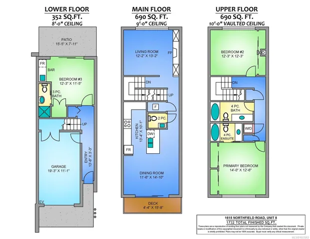 We are excited to showcase The 1615 Residences, an exciting eleven town home development in Central Nanaimo. These thoughtfully designed, quality constructed homes offer modern comforts in an easy-to-maintain setting: lock the door and go! Close to Departure Bay beach, Nanaimo Hospital, parks, and ferry terminal. Your modern living includes 1900+ sf, 3 bedrooms & 4 baths, vinyl flooring, contemporary colours and finishes, ductless heat pumps, decks, gardens, a single car garage (with EV rough-in plus driveway. Features on the main level include a large, deep peninsula kitchens, adjoining family/dining room, and living room with gas fireplace. The upper level features vaulted ceilings for optimal natural light, two spacious bedrooms with ensuite and 2nd full bathroom. The lower level is designed in a lock-off style with the 3rd bedroom, 3 piece ensuite, room for a undercounter fridge/bar, and slider onto the rear patio. All measurements approx. and should be verified if important.