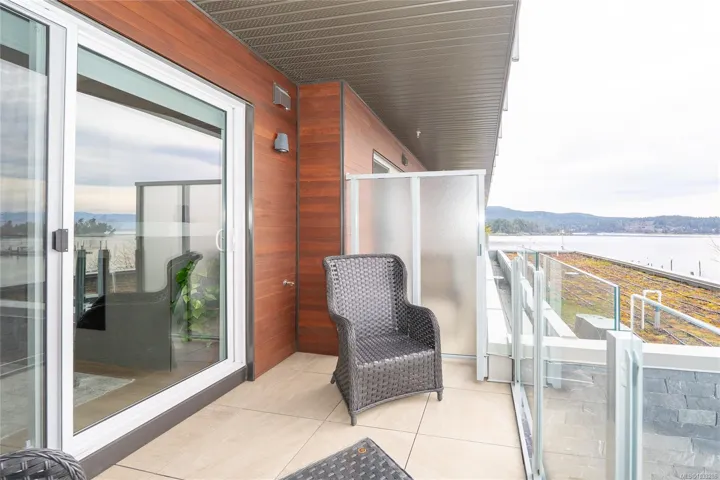 Enjoy refined oceanfront living in this oversized 2-bed+Den, 2-bath residence offering just under 900 sq. ft. of thoughtfully designed space. The open-concept layout features a stylish kitchen with stainless KitchenAid appliances, gas range, quartz countertops, and seamless flow to the dining and living areas. Step outside to an expansive 263 sq. ft. patio with gas BBQ hookup—ideal for entertaining while taking in ocean and mountain views. Quality finishes include oak hardwood flooring, 9-ft ceilings, and oversized windows that flood the home with natural light. The king-size primary bedroom connects to a spa-inspired ensuite with dual vanities, soaker tub, glass shower, heated floors, and private water closet. A separate 3pc bath, secured underground parking, and storage locker complete the home. Located in the exclusive Residences on Sooke Harbour, a boutique collection of just 27 oceanfront homes offering a private fitness studio, kayak storage with ocean access, and secured entry.