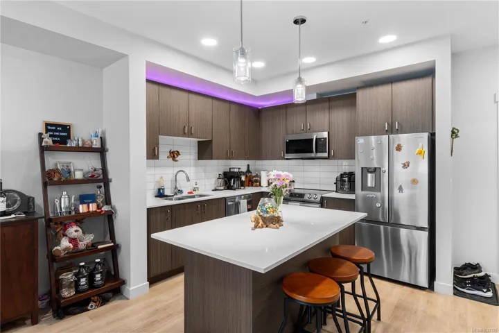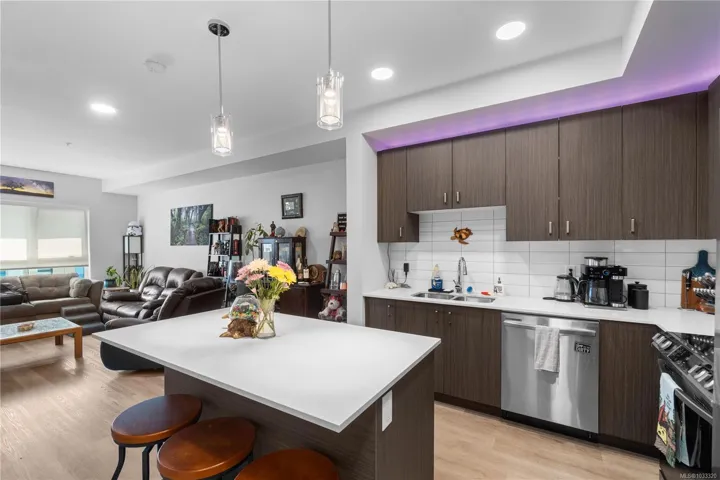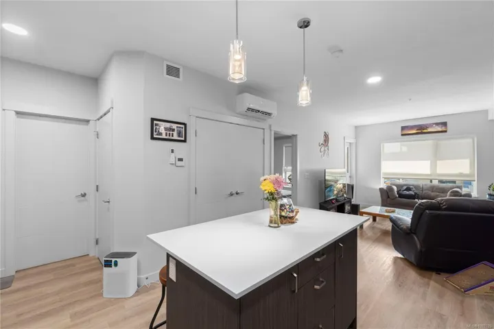HERE IS YOUR OPPORTUNITY – whether you’re looking for your first home, or need that second cozy spot for your ‘island getaway’ this beautiful, bright, open concept 1 bedroom, 1 bathroom (basically brand new) home is here for the taking. To make things even more appealing MOSAIC (building name) is one of Vancouver Island’s most environmentally-advanced multifamily buildings. The creature comfort features in this home are many, but here goes; While living in your next home you’ll enjoy the absolute ambient comfort of triple pane windows, heat pump for heating/cooling, and energy recovery ventilation. And for style you have gorgeous vinyl plank flooring, quartz counters, LED lighting, soft close cabinetry. For peace of mind, and reduction in insurance costs, the unit also contains water escapement sensors located strategically throughout the home. This one’s a winner.