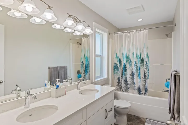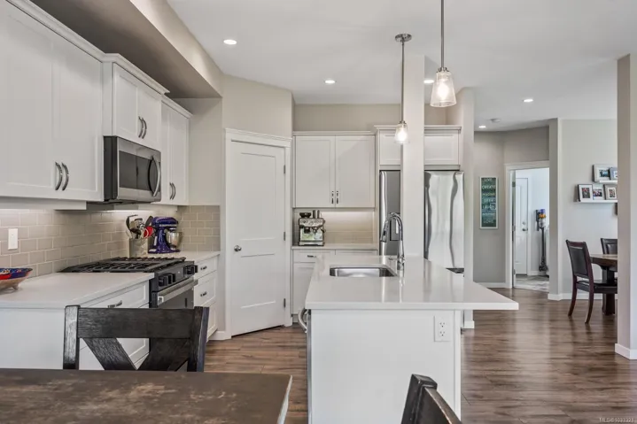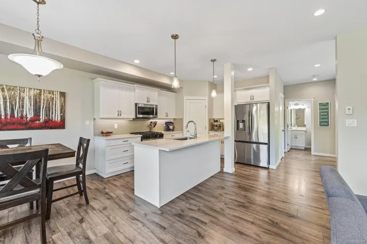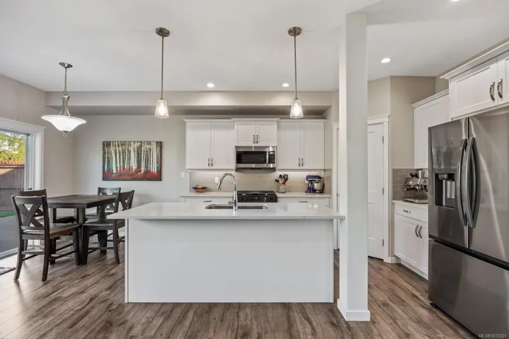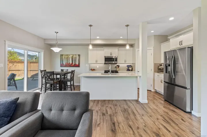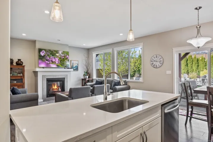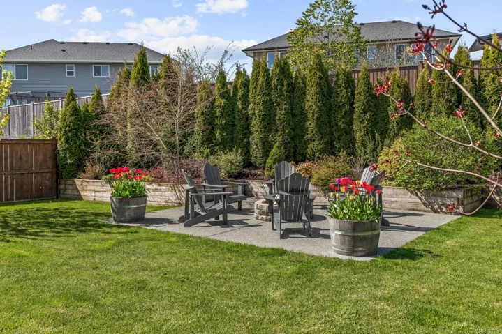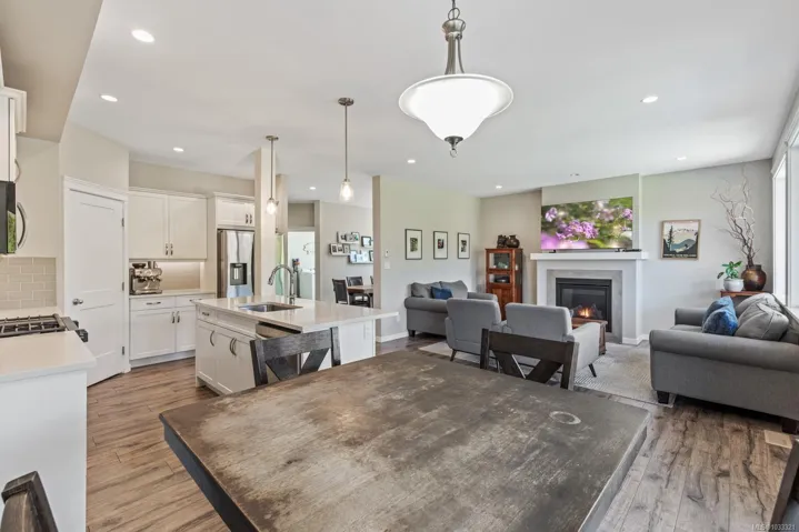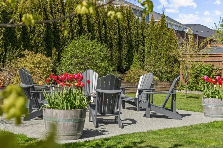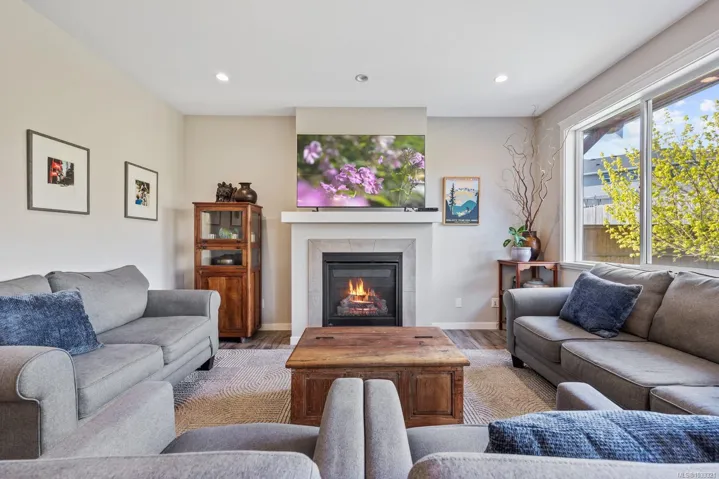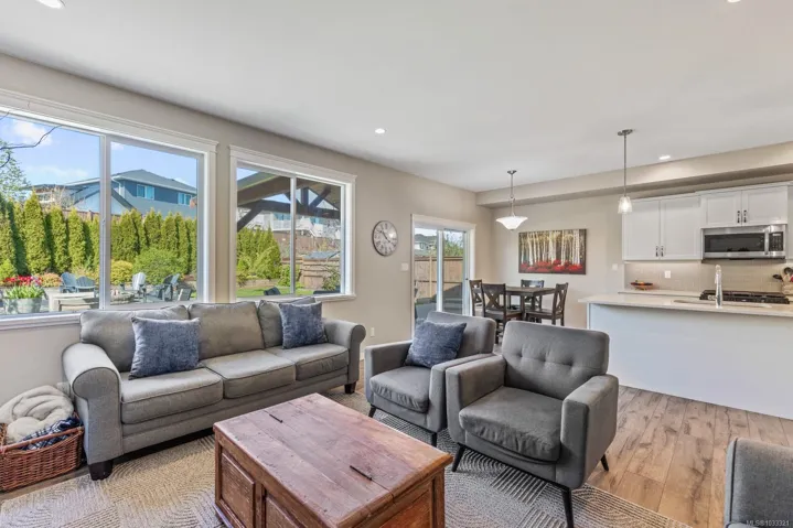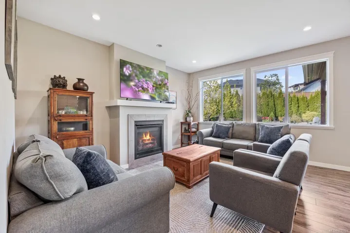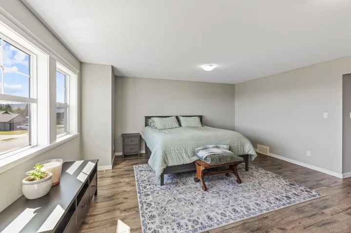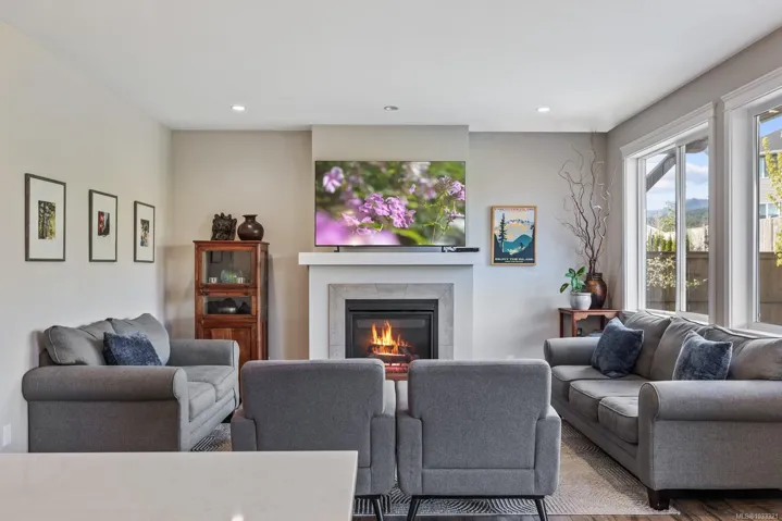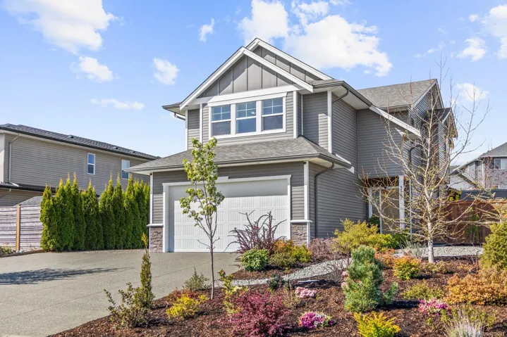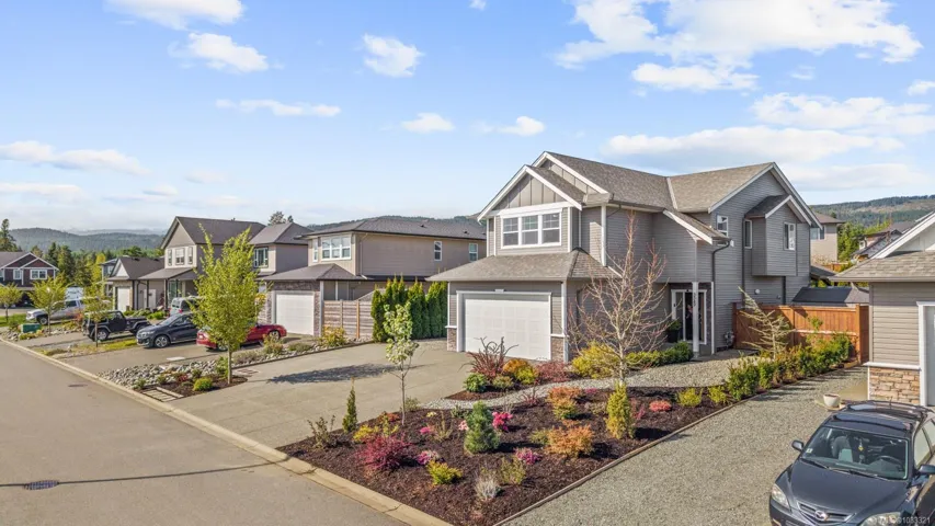 Click link for video! This immaculate home offers mountain views & peekaboo ocean vistas! Custom finishings and thoughtful upgrades are showcased throughout. 4 parking spaces + dedicated RV and boat space. Enjoy year-round comfort with central air conditioning and gas furnace. Step into a lush backyard oasis featuring beautiful landscaping and cozy fire pit area—perfect for relaxing or entertaining. The gorgeous custom exterior timber frame feature was professionally built with permits, and the property is equipped with an irrigation system! There is a 50-amp service ready for hot tub, sauna, or workshop. 2 spacious garden sheds for extra storage. Inside, you’ll find quartz countertops, brand new stainless steel appliances, durable high-end vinyl plank flooring, and a functional layout with 4beds, and 3baths. The natural gas fireplace creates warm inviting ambiance. Still under warranty! Book soon to see this quality home near world class mountain biking, hiking, and Comox Lake
