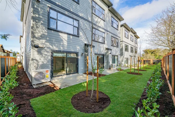 We are excited to showcase The 1615 Residences, an exciting eleven town home development in Central Nanaimo. These thoughtfully designed, quality constructed homes offer modern comforts in an easy-to-maintain setting: lock the door and go! Close to Departure Bay beach, Nanaimo Hospital, parks, and ferry terminal. Your modern living includes 1900+ sf, 3 bedrooms & 4 baths, vinyl flooring, contemporary colours and finishes, ductless heat pumps, decks, gardens, a single car garage (with EV rough-in plus driveway. Features on the main level include a large, deep peninsula kitchens, adjoining family/dining room, and living room with gas fireplace. The upper level features vaulted ceilings for optimal natural light, two spacious bedrooms with ensuite and 2nd full bathroom. The lower level is designed in a lock-off style with the 3rd bedroom, 3 piece ensuite, room for a undercounter fridge/bar, and slider onto the rear patio. All measurements approx. and should be verified if important.