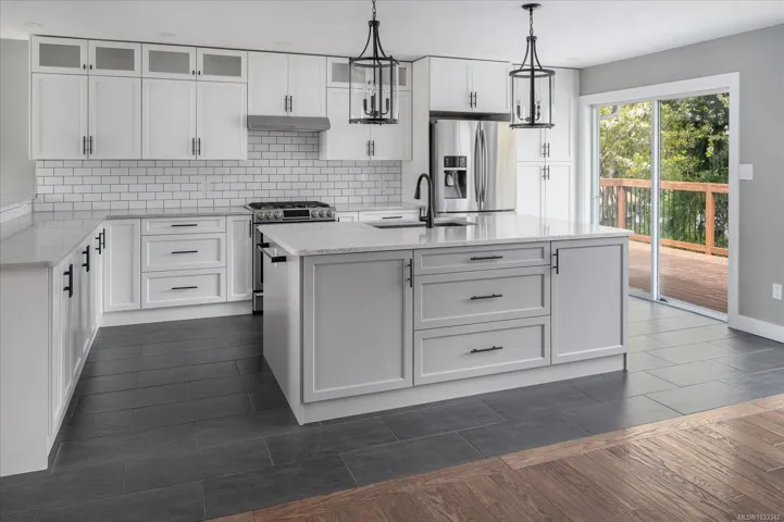 Move right into this beautifully updated family home in one of North Nanaimo’s most sought-after neighbourhoods! Offering 5 bedrms, 3 bathrms & a spacious thoughtfully designed floorplan that is both open & airy, yet cozy & livable. Large windows & skylights fill the home with natural light, highlighting upstairs hardwood flooring. The gorgeous kitchen boasts classic cabinetry, quartz countertops, S/S appliances incl gas range, a large island –perfect for family gatherings and entertaining. The main level also offers bright living and dining spaces, two additional bedrooms, a 4-piece bathrm, laundry/mud room, a spacious primary bedrm w/ ensuite & tranquil views. Downstairs, you’ll find two more large bedrooms, a third bathrm, a huge rec room w/ newer flooring, plus a workshop w/ abundant storage space & newer gas furnace. Step outside to enjoy the fully fenced private backyard w/ mature low-maintenance landscaping, large deck, lower patio—ideal for outdoor entertaining & family fun.