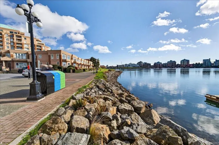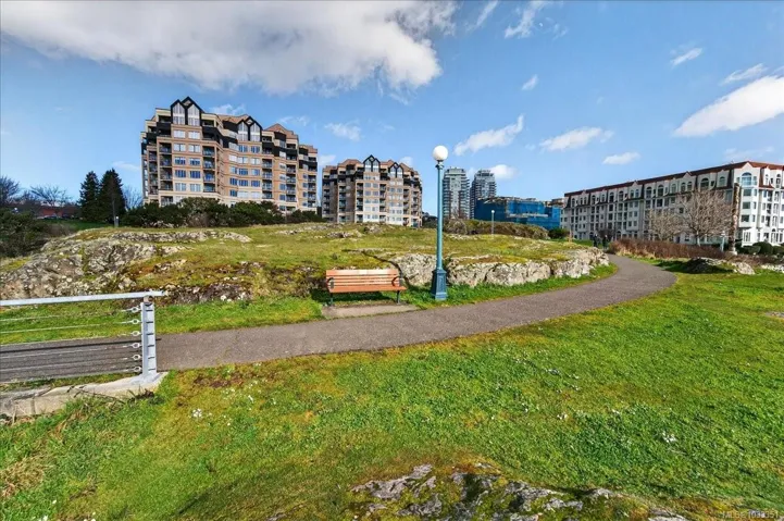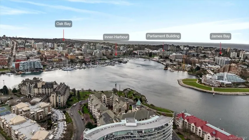 *OH Sat 1-3PM* Discover a rare opportunity to own a corner residence in one of Victoria’s most sought-after steel-&-concrete landmarks. This nearly 1,500 sqft unit has been thoughtfully reimagined with a modern aesthetic, featuring updated flooring, designer-inspired kitchen with sleek cabinetry, & warm gas fireplace for quiet evenings. Walls of stunning bay windows frame the vibrant surroundings, bathing the interior in natural light. The primary serves as a sanctuary, with a walk-through closet & private ensuite. Practicality meets luxury with an expansive in-suite laundry & storage room, plus a dedicated storage locker & secure parking. Building amenities include: Iconic Rooftop Terrace – The city’s premier vantage point for Inner Harbour fireworks. Guest suite, lounge & boardroom, bike storage, car wash bay & direct access to waterfront trails. Located a scenic stroll from downtown Victoria, you are steps from world-class dining & the tranquility of the Songhees Walkway.