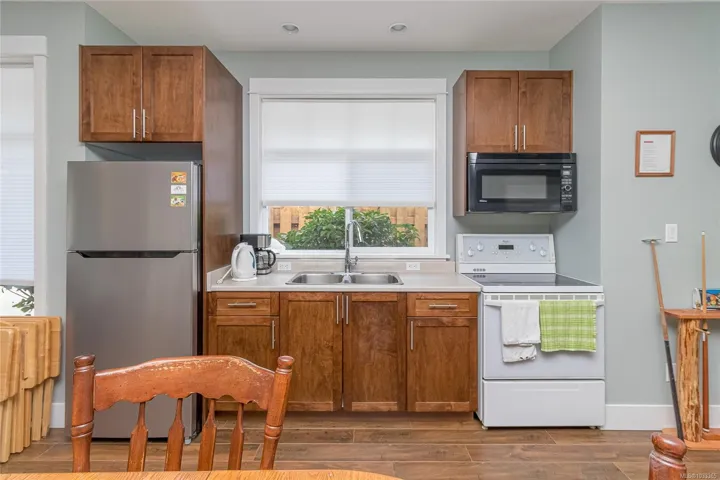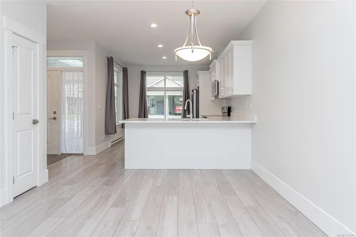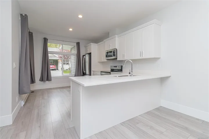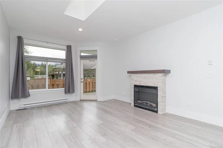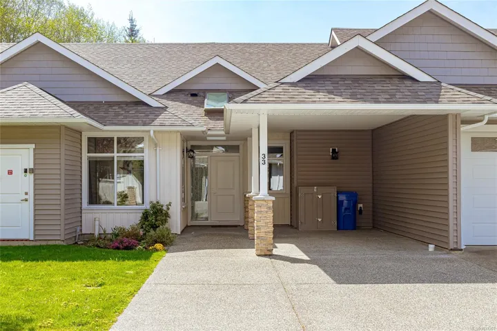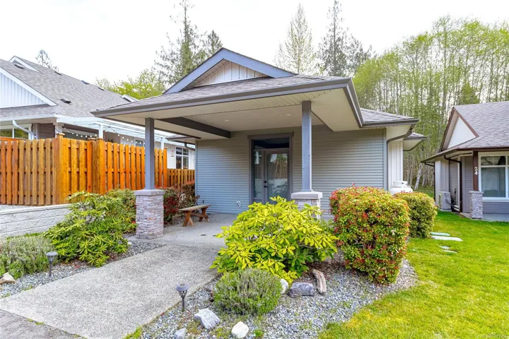Built in 2020, this like-new 2-bed, 2-bath home offers quality finishings and easy living in a quiet, well-kept community. Enjoy 9’ ceilings, skylights, quartz counters, stainless appliances, and a cozy electric fireplace with a stone surround. The bright, south-facing patio backs onto forest with mountain views, offering added privacy with no rear neighbours. The fenced and gated yard is perfect for relaxing or pets (with approval). Includes a carport and parking for 2 more cars, plus plenty of guest parking. Peaceful creeks border the complex, adding to the serene setting. A short walk takes you to shopping, dining, and amenities in town; it’s just 5 minutes to the lake and river, and 20 minutes to Duncan. A clubhouse for gatherings and a remaining new home warranty make this a great option for downsizing or low-maintenance living. Move-in ready and beautifully maintained.