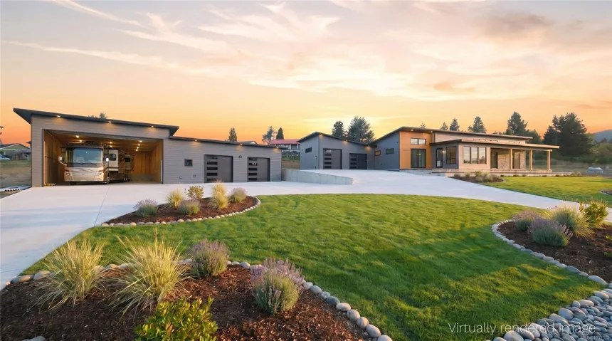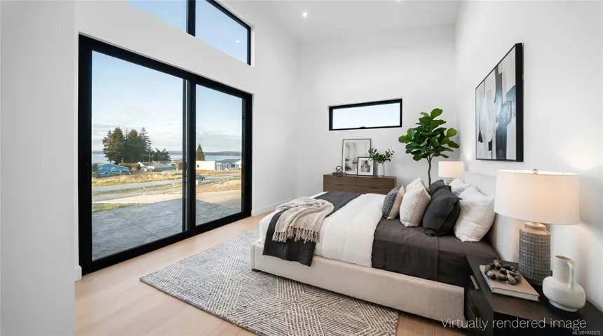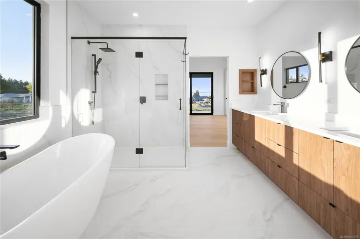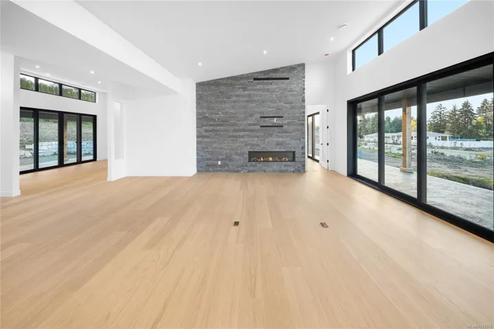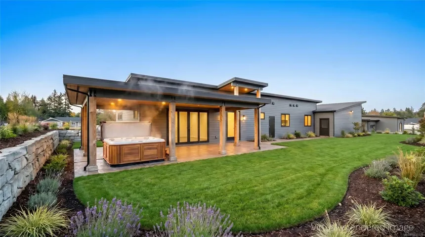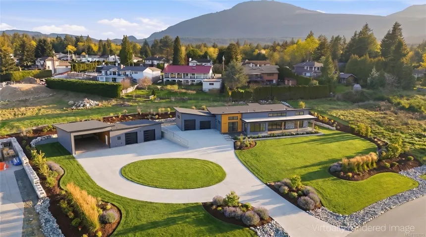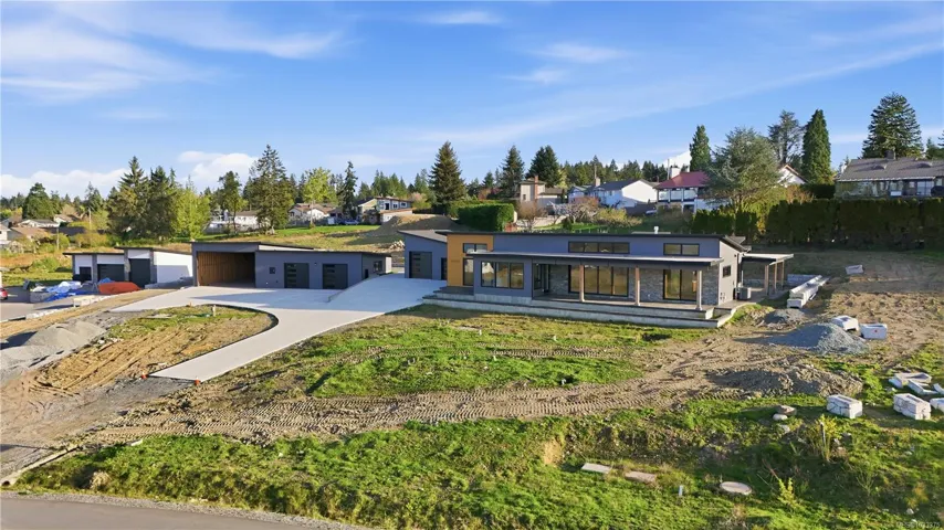 Custom 3 bed, 4 bath executive rancher in sunny Saltair w/ ocean & mountain views. 2,850+ sqft living + 2,700+ sqft garage/workshop. Vaulted ceilings to 14 ft, oversized windows & full Westeck package w/ transoms, clerestory & 16 ft 4-panel patio door. Chef’s kitchen w/ 36” Wolf gas range, premium appliances, custom cabinetry w/ birch boxes, Calacatta Plata quartz & large island + butler’s pantry. Living room w/ 72” Napoleon fireplace & bluestone feature wall. Primary suite w/ ocean views, walk-in closet & spa-inspired ensuite + patio access & hot tub rough-in. All 4 baths finished to a high-end standard. Games room w/ wet bar rough-in. Hardwood floors, 8 ft doors. Covered patio, stamped concrete, landscaped yard & RV/boat parking, set on almost 1 acre. Attached double garage w/ EV, detached heated shop + 25×40 super garage. Sani-dump & generator-ready. Minutes to Ladysmith, Chemainus & Nanaimo Airport. (All info believed to be correct, buyer to verify if important.)