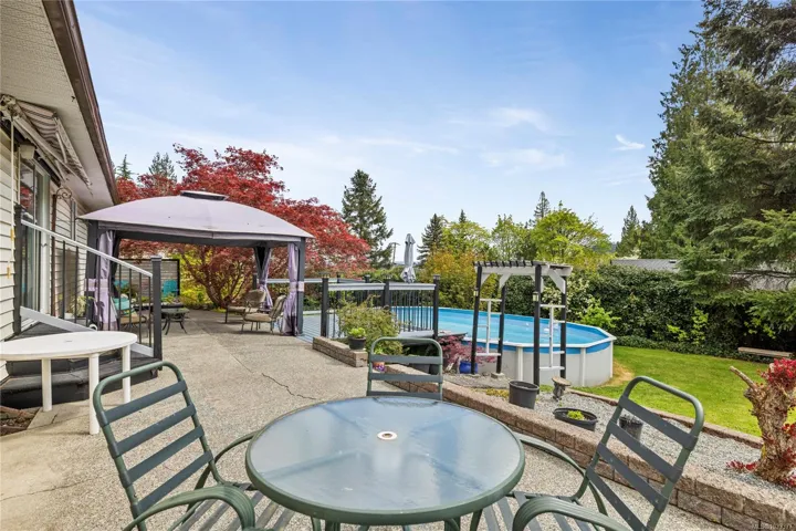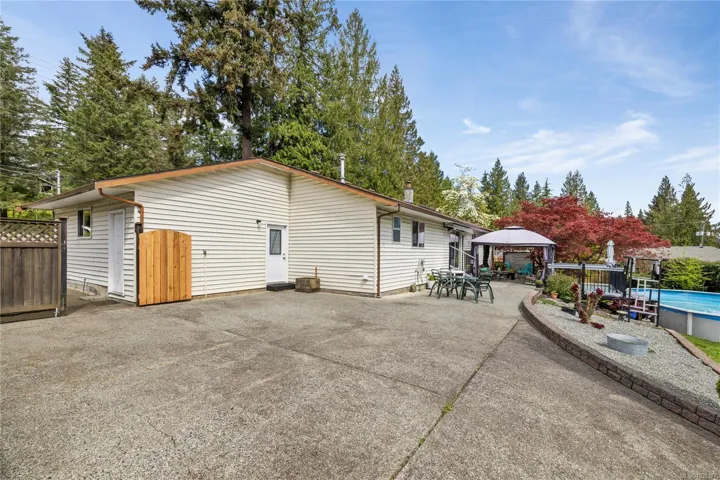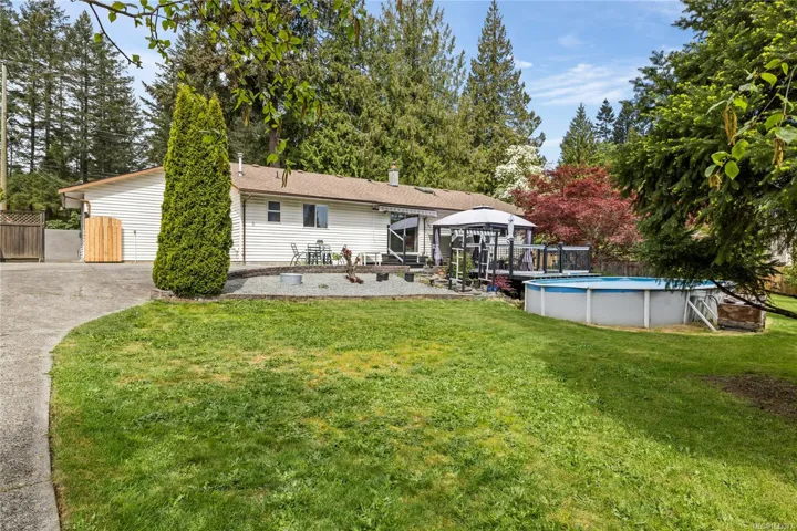 Situated on a private, south-facing 0.44 acre fully fenced lot in Chase River, this 3 bed + den, 2 bath rancher offers comfortable one-level living with excellent outdoor space. Inside, a functional mudroom and dedicated laundry room add everyday convenience, keeping busy households organized and clutter at bay. The large patio is perfect for entertaining, overlooking the above-ground pool and spacious backyard designed for relaxing, gardening, and enjoying the sun. The property also includes 2 sheds, & a workshop providing plenty of room for tools, hobbies, or seasonal storage. Updates include laminate flooring, neutral paint, and gas hot water tank (2021). Ideally located within walking distance to Cinnabar School, near a bus stop, and just a short drive to Southgate Mall and hwy access, making commuting and daily errands easy. A great opportunity to enjoy privacy, and convenience in a family-friendly neighbourhood. Data and measurements are approx and must be verified if important.
