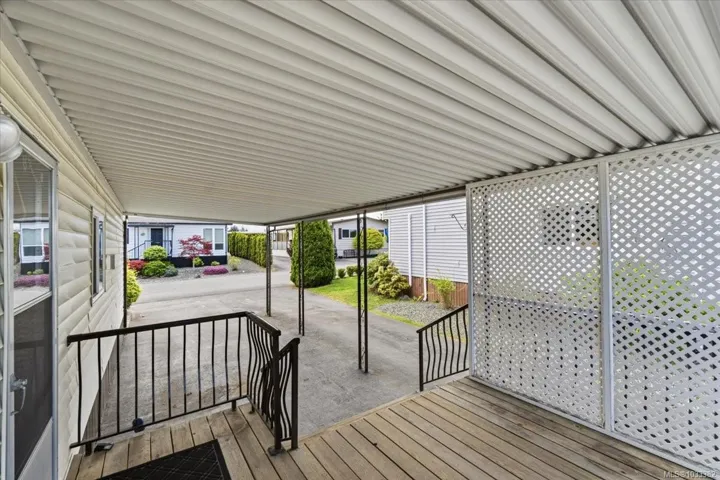 Here is an affordable retirement option in Sharman Park. This a 55+ park giving you the peace of mind knowing like minded owners enjoy the quiet setting. This residence is over 900sf including 2 beds and 1 bath and two separate living areas. Updates include some windows, gas furnace and recent roof replacement. The new owners decorating ideas will make this home shine. There is a good deck space, car port and additional parking while the low maintenance yard offers options for raised gardens beds. Perhaps the ideal location right, its right beside the Superstore for shopping and Woodgrove Center is just a few minutes away. Measurements by Proper measure buyer to verify if important.