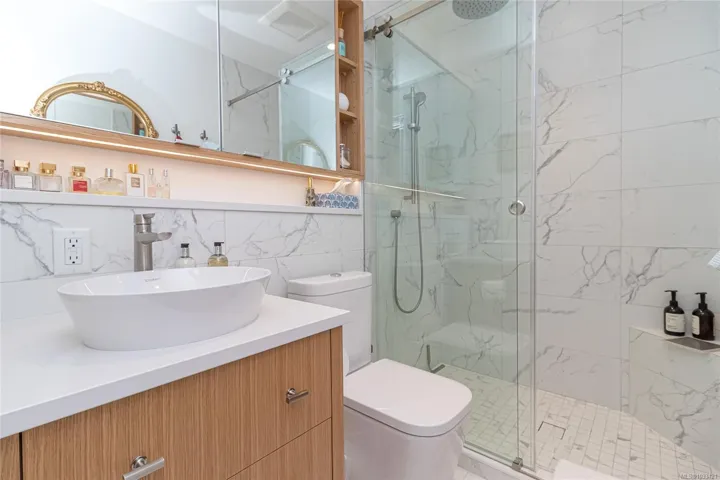 Prepare to be impressed with this elegant & thoughtfully updated 2 bed 2 bath condo situated in the heart of Oak Bay Ave. The Fiori is a quality steel & concrete building rich with style & functionality. This bright & sunny south facing corner suite is on the quiet side of the building & has a great layout! The bedrooms are positioned on opposite sides of the unit for privacy, one with a completely remodelled ensuite bathroom & the other with an updated ‘cheater’ ensuite. The main living space is an open concept kitchen/dining & living room with a new cozy fireplace & access to the very large & private south-facing balcony perfect for entertaining. Features of this beautiful condo are stainless steel appliances, hardwood floors, large picturesque windows, in-suite laundry and 9 foot ceilings. This pet friendly, rentable unit includes one parking space, bike storage & a storage unit. Only a few blocks to Red Barn, Oak Bay Village and all amenities this vibrant community has to offer.