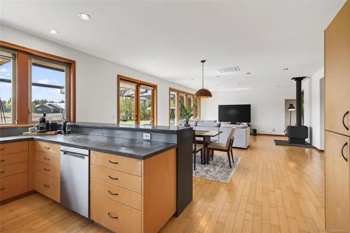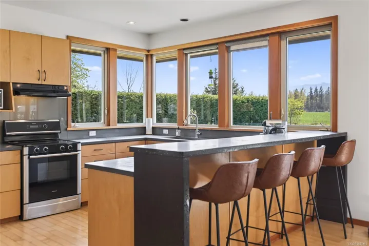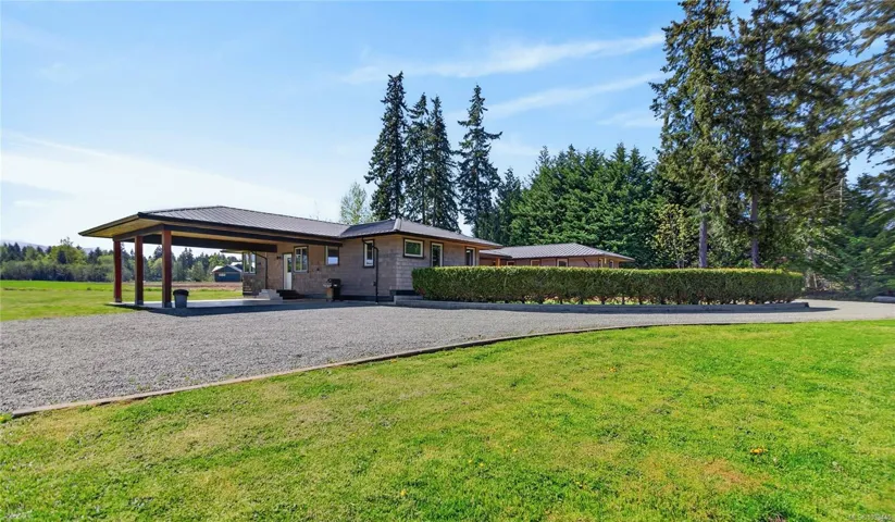 Sought after 2.3-acre country estate features a custom built 3,900 sq ft home with 6 bedrooms, 4 baths providing plenty of space. The open-concept kitchen features concrete countertops, eat-up bar & abundant cabinetry. The spacious primary bedroom offers a beautiful ensuite & large walk-in closet. The upper level offers a private guest suite with 2 beds, bath & living area with possible Bed & Breakfast opportunities. The lower level includes a media room, flex room & crawl space. Enjoy year-round comfort with a wood stove, in-floor radiant heat or a mini-split heat pump. French doors off the living room open to a large patio showcasing stunning Beaufort Mountain & farmland views. There is a 673 sq ft self contained cottage with radiant heat perfect as a mortgage helper or extended family. Room for all the toys & tools in the 900 sq ft shop with wood stove. There is a 15×11 storage shed and charming Koi pond on the spacious property. Located just 5 minutes to Courtenay or Cumberland.