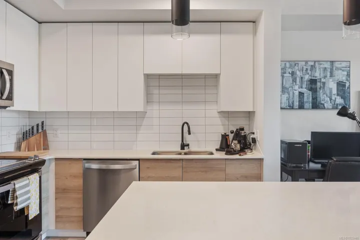 Welcome to Aurora, a modern and pet-friendly condo complex perfectly placed in the heart of Comox. Unit 403 offers an easy, elevated lifestyle with beautiful mountain and glacier views that bring a sense of calm to your daily routine. Inside, this stylish 2-bedroom, 1-bathroom condo features an open-concept kitchen, dining, and main gathering space designed for connection and comfort, with quartz countertops, soft-close cabinetry, contemporary lighting, luxury vinyl tile, and warm carpeting in all the right places. The thoughtful layout feels airy and welcoming, creating a space that lives larger than its footprint. Step outside and enjoy being just a short stroll to groceries, cafés, pubs, restaurants, a pharmacy, medical offices, hardware store, pet store, veterinarian, and Aspen Park Elementary. Whether you are starting out, downsizing, investing, or simply craving a low-maintenance way of life near everything, Aurora makes day-to-day life feel simple, connected, and inviting.