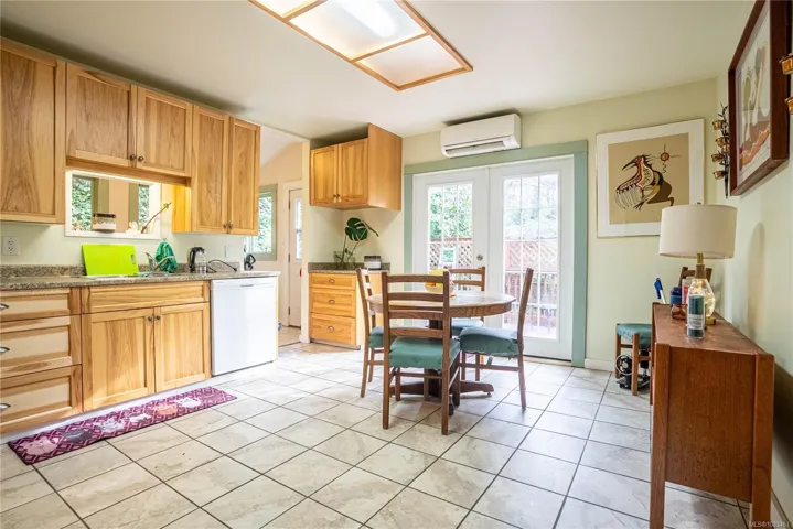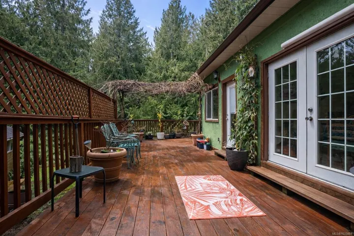 Tucked away in a peaceful Shawnigan Lake setting, 1780 Elford Rd offers privacy, character, and flexible living surrounded by mature evergreens. Set back from the road, this West Coast home was built with solid first-growth lumber and has been well maintained, showcasing timeless craftsmanship and warmth. The bright main level features a spacious living room flowing into the kitchen and dining area, with large windows framing forest views and filling the home with natural light. The kitchen offers ample cabinetry, generous counter space, and access to a wraparound deck ideal for outdoor dining.Two bedrooms, a full bath, and laundry complete the main floor. Upstairs features a vaulted third bedroom with its own full bath. The lower level includes additional living space with a separate area, kitchen setup, full bath, and laundry, ideal for guests or extended family. A detached workshop and private treed yard complete this versatile property.