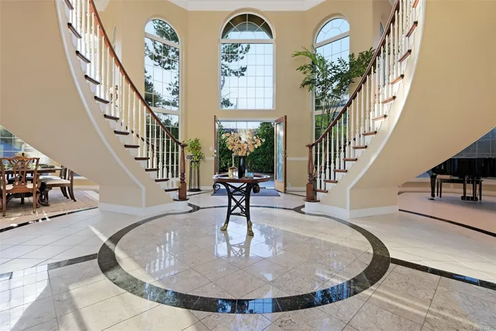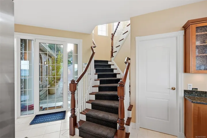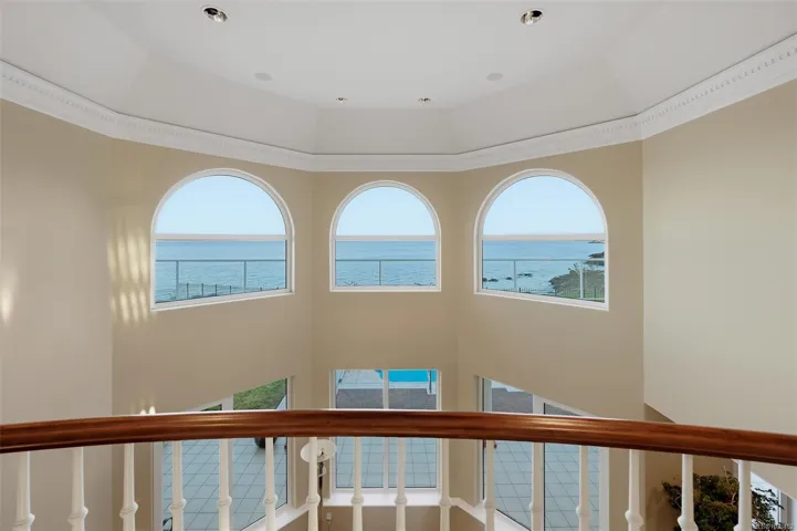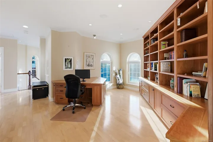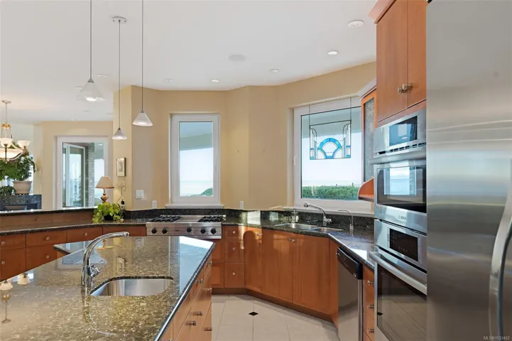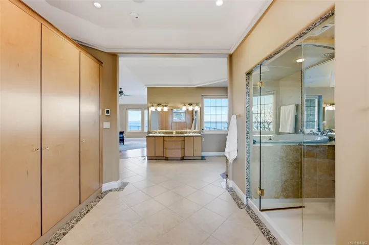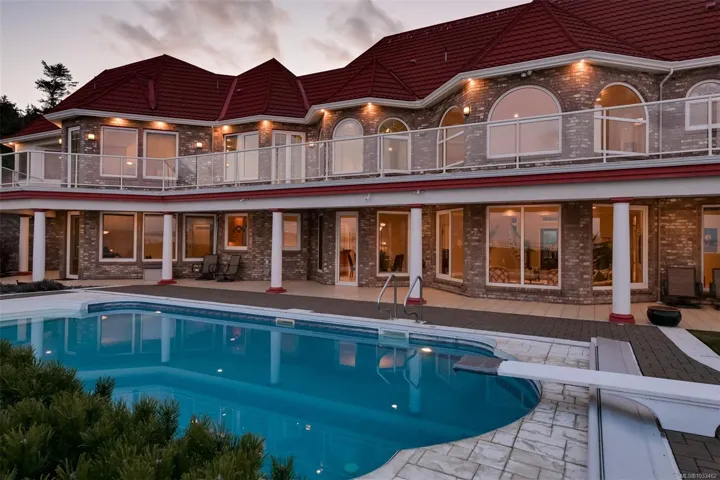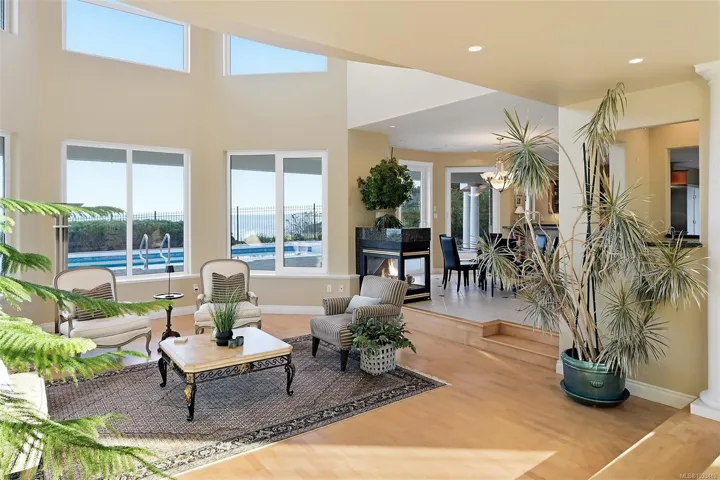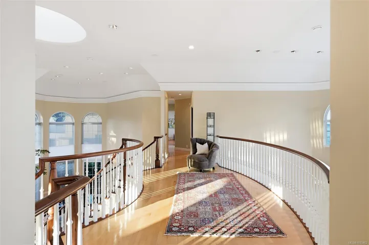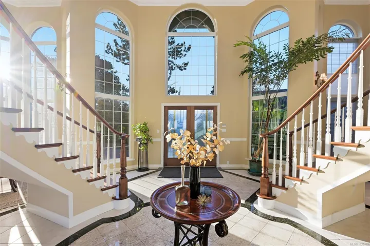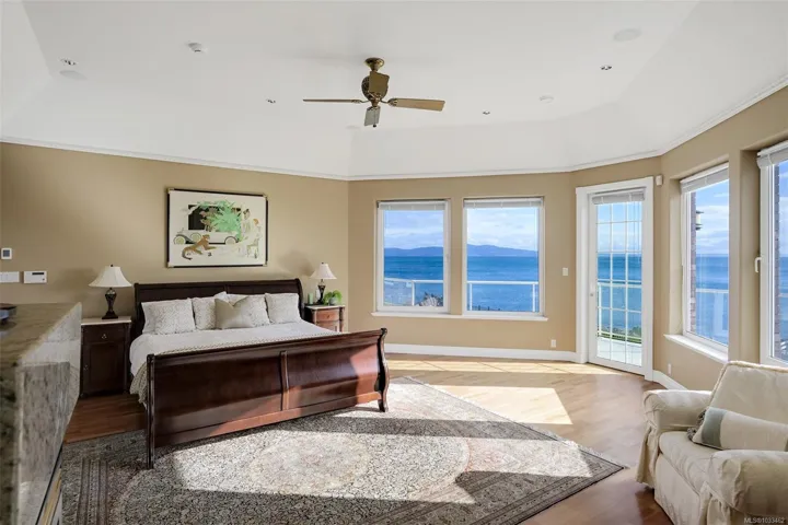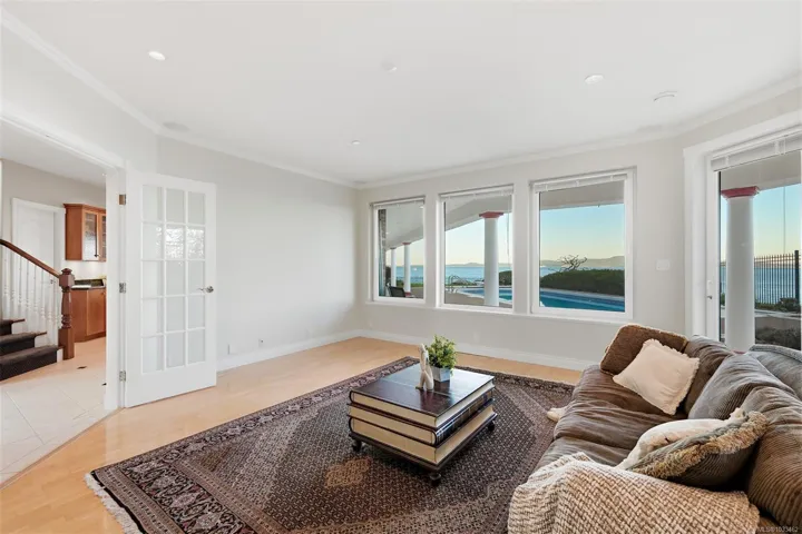 Now Priced 10% BELOW Assessed Value! Quiet, solid bedrock, oceanfront with no bank-erosion concerns & no public beach influence. No through street. Additional boulevard parking. Fully deer-fenced! Almost 6600 SF of living space + massive garage area comprises another 1000+ SF; truly a car-enthusiast’s dream. Exquisite Foyer, Piano Conservatory, formal DR & LR with 21-ft ceilings, surrounded in windows with a circular rotunda dome in the center of it all. 5 BRs, each with full ensuite. Library/Study up + unique office on main. FR right off pool deck. Media Room at the opposite end of the residence. Panoramic views over Salish Sea with ice capped Mt Baker & the Cascades Range front & centered in your outlook. Designed to perfectly sprawl over this .83-acre property while taking the most advantage of the view from each room. So close to the U-Vic. Telegraph Cove Beach, just a stroll from your front door, where you can enjoy the sand. Cadboro Bay Beach & Village is about a 15-min walk.