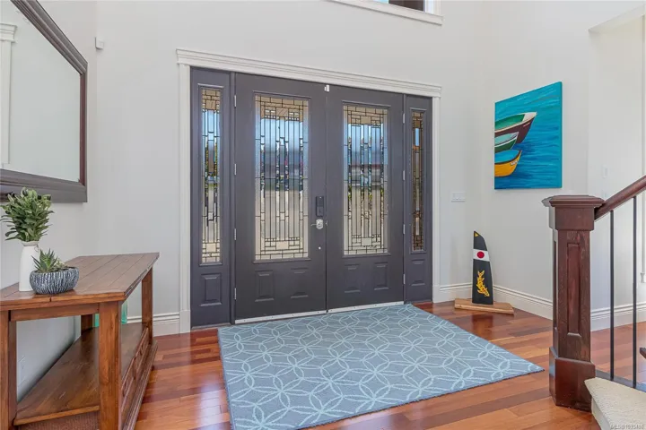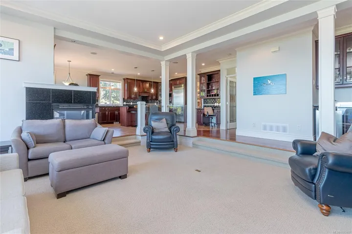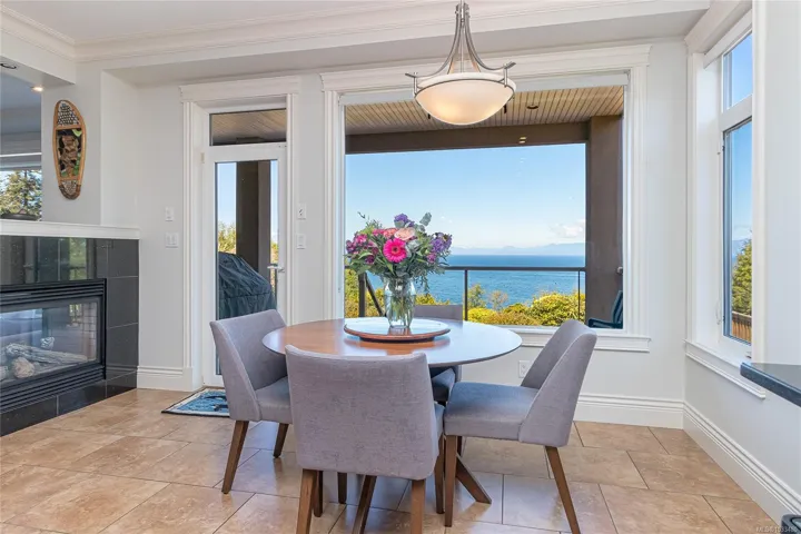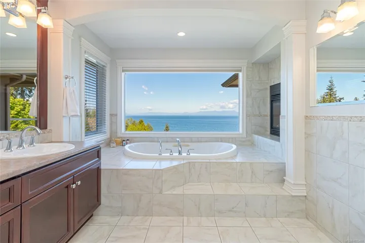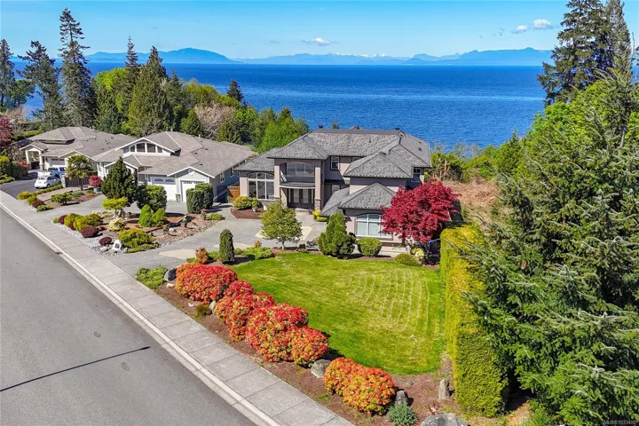 Experience the ultimate in West Coast living with this waterfront residence, offering breathtaking views and exceptional lifestyle. This .77-acre waterfront property is beautifully landscaped, offers a 2-storey residence with 3 bedrooms & 5 baths. Thoughtfully designed, this expansive home offers a grand entrance with high ceilings, separate formal living & dining rooms, a family room with a 3-sided gas fireplace,while the gourmet kitchen includes a huge walk-in pantry,work island with sink & breakfast nook with access to the sundeck. The rest of the main level offers a home office, modest home gym space, 2 powder rooms & laundry room with a laundry chute. The 2nd level offers a primary bedroom suite with ocean and coastal mountain views, walk-in closet, cozy gas fireplace,5-piece ensuite w/soaker tub,separate shower & access to the private balcony. The upper level also includes a guest bedroom with an ensuite, a 3rd bedroom, a 4pc bath & huge bonus room above the heated double garage.