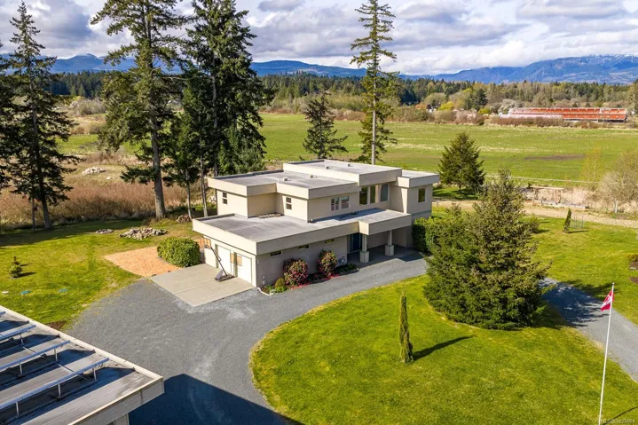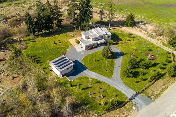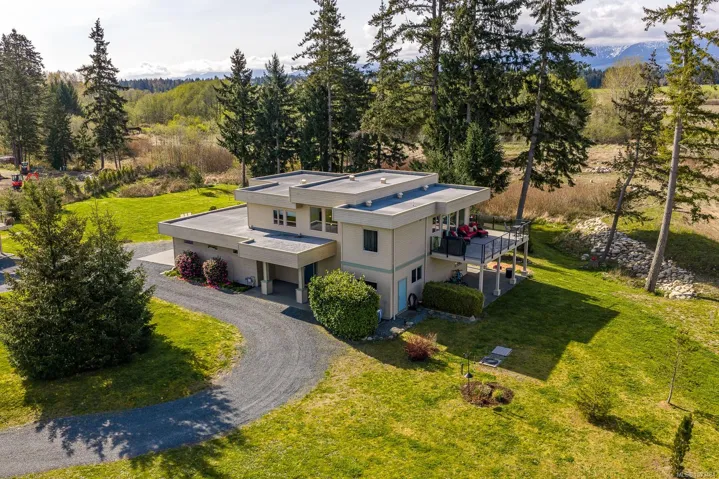This beautiful sun soaked 5.6 acre property features both a main home & a carriage home perfect for generational living or potential rental income. A rare combination of self-sufficiency & modern upgrades but designed for comfort and efficiency in mind. The 3135 sqft, 5 bed/4 bath main home offers sweeping mountain views from the expansive windows, a fir staircase, engineered hardwood, & a custom kitchen with quartz counters & stainless appliances. The primary suite includes a WIC, 5-piece ensuite, & private deck, while the lower level adds a family room, 3 beds & 1.5 baths. The 875 sqft 2bed/1bath carriage house sits atop a double sized garage also with lovely mountain views. Extensive features include solar panels, heat pump HVAC, smart hot water, generator-ready power, dual wells, cistern, filtration, & dual septic. Outdoors offers a powered gate, RV hookup, gardens, fruit trees, & a garden. Minutes to town and all amenities. Approx. 3 acres of the property is protected wetlands.