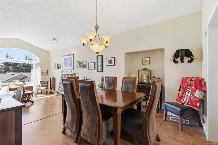 Welcome to 3533 Sunheights Drive with spectacular water and mountain views– a spacious family home designed for comfortable living and entertaining, featuring vaulted ceilings and 2 gas F/P, along with formal living and dining rooms enhanced by French doors and wet bar. The kitchen offers an island with eating bar, eating area, family room with computer desk, creating a functional hub for daily life. Enjoy outdoor living with a large back deck overlooking a private yard, plus a front deck perfect for taking in sunset. The lower level includes a rec room and a flex room for a variety of uses. Additional highlights include, central Vac, built in speakers and laundry room with shower. A great location within walking distance to 4 parks, bus stop and a short drive to all amenities. Set on a generous 0.33-acre lot, this property features a striking rock wall that enhances privacy, along with an upper portion left in its natural state, perfect for enjoying a peaceful, park-like setting.