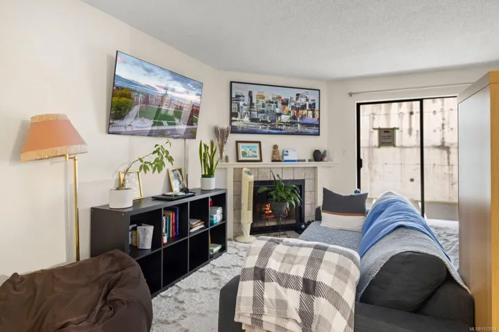 This is the one! You will be impressed with this nicely updated and move in ready 1 bed, 1 bath condo on the quiet side of the building. Spacious layout with cozy wood burning fireplace in the living room. The balcony is currently under construction to be replaced and the strata special assessment has been paid the Seller. Quick Possession possible. Unrestricted rentals, pet friendly, parking space & storage locker. Just across the street from a park to walk your dog, cafe, Mayfair Mall, Uptown, major bus routes and 10 minutes from Downtown make this the ideal location. Call before it’s Sold!