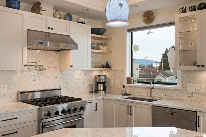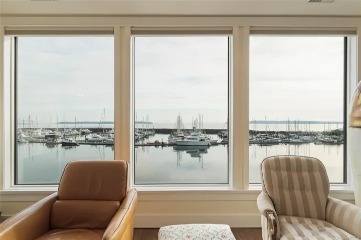 Follow your dream, home. Welcome to Villa Isabella, a gracious seaside sanctuary on Sidney’s picturesque waterfront. Intimately connected to the ocean and marina, this boutique residence offers over 3,100 sq. ft. of masterfully designed living space across three levels, featuring a private elevator for effortless, long-term living. Floor-to-ceiling windows frame a living masterpiece: uninterrupted views of the harbour, Mt. Baker, and a lively marine backdrop. The main level offers open-concept elegance with an updated gourmet kitchen and stone surfaces. The primary suite is a true retreat with a private balcony and spa-like ensuite. The upper level provides rare versatility with full secondary living quarters, including a kitchen, living area, and three bedrooms—ideal for guests or live-in support. Complete with three balconies, a wine cellar, and a garage, this “lock-and-leave” lifestyle is steps from Beacon Avenue’s boutiques and cafés. Live your luxury at Villa Isabella.