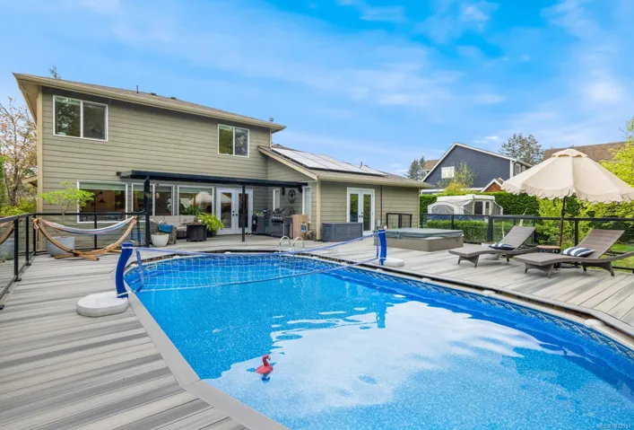 Open House Sat 1-3 May 2. The home you will never need a vacation from! Welcome to 2161 Wildflower in the Beach Estates found in serene Shawnigan Lake. Located in arguably the most desired street to live on with its wide roads, the many gorgeous homes and the parks and play areas close by, this is one neighbourhood you will want to call home. With 2600 sq ft of family living, 4 bedrooms plus a den, 4 bathrooms all located on a generous sized lot with green space and privacy, this property is the ultimate family paradise. Your gorgeous backyard is immersed with fruit trees, a built in Hot Tub, a large covered heated Pool, a welcoming fire pit area and plenty of play area for the kids or pets. This home has also undergone numerous enhancements including Solar Panels, EV Charger, a New Natural Gas Furnace & Hot Water Tank, Air Conditioner, a New Roof and stunning Kitchen. Country living at its finest, yet only a short distance to all amenities as well as the Beach & Lake for Summer fun.