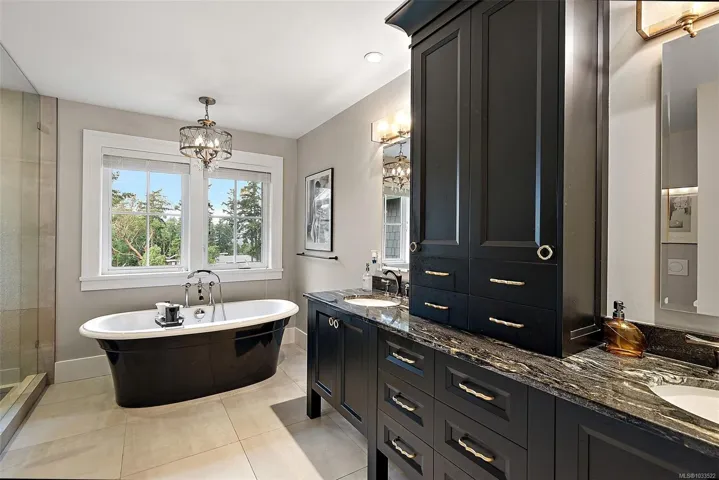 A superlative quality of life awaits! This custom-designed luxury home combines a peaceful setting with world-class leisure activity. The 4-bedroom, 4-bathroom house stands on a quiet cul-de-sac. But it’s only steps from Bear Mountain’s restaurants and spa; pool, hot tub and gyms; tennis courts and 36-hole, Jack Nicklaus-designed golf course (transferable membership now held GMEA dormant). Back on Pebble Place, this stylish, 8-year-old home has been lovingly cared for. It features outdoor patios with a beautiful infinity hot tub, 25.5-foot vaulted ceilings; an elegant skywalk; interior and exterior gas fireplaces; and extensive windows that take in forested views up the valley, from slow mornings to sunset moments. All this backs onto the 4th green of an iconic golf course near Goldstream Park’s walking and hiking trails. From Langford, short drives take you to events in Victoria or on South Island getaways. Enjoy the best of west coast living; join this premiere resort community!