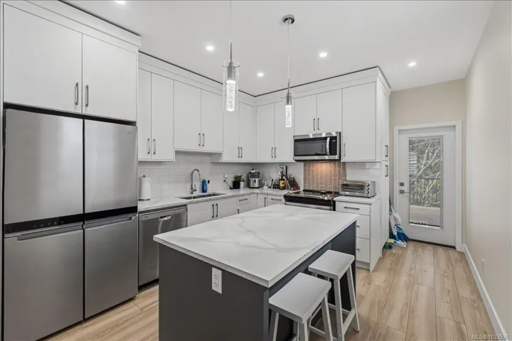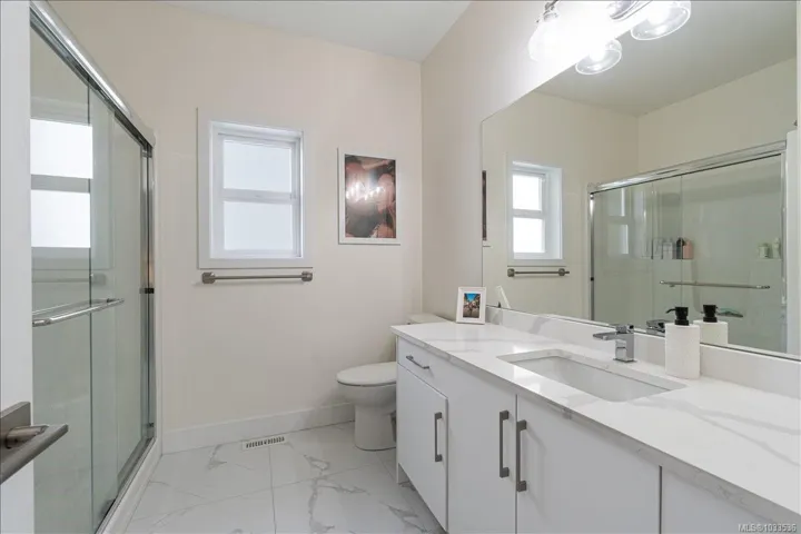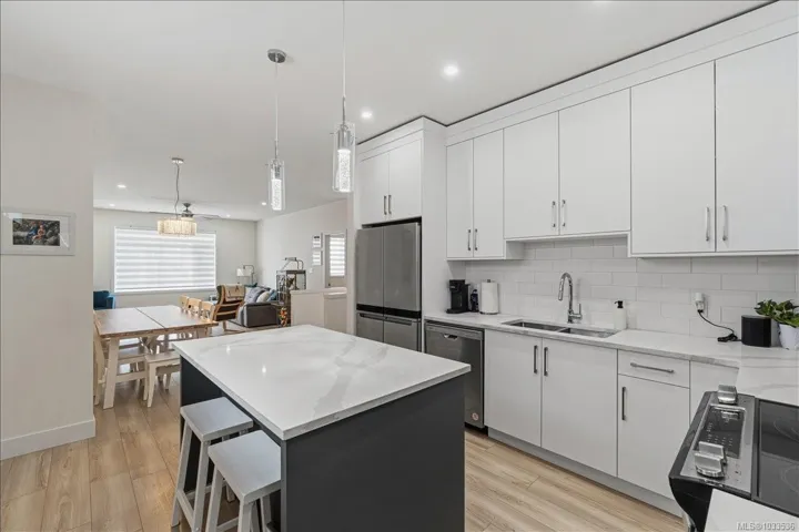Set on a quiet street of newer homes in Nanaimo’s vibrant south end, this exceptional 2023-built residence delivers the perfect blend of modern design, quality construction, and everyday functionality. Offering 5 bedrooms and 3 bathrooms, including a beautifully finished 2-bedroom legal suite, it’s an ideal opportunity for family living with strong income potential. The thoughtfully designed floor plan showcases upscale finishes throughout, highlighted by stone countertops, high-end laminate flooring, and a bright, contemporary aesthetic. The main home features efficient forced air natural gas heating, on-demand hot water, and a heat pump rough-in for future comfort, while the suite is fully self-contained with separate meter and electric baseboard heat. Step out to a generous deck overlooking the private backyard, ready for your vision. Walking distance to an elementary school and close to all amenities, all in a peaceful, family-friendly neighbourhood.