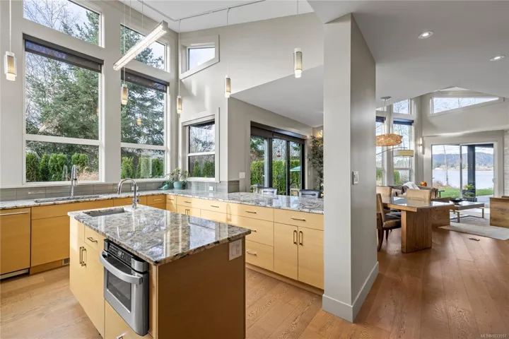 Executive custom rancher on a private lakefront sanctuary impresses with 5 vaulted ceilings, and seamless indoor–outdoor flow with expansive retractable glass walls. Located in the sought after Trumpeter Point, perfect blend of luxury, nature, and West Coast serenity This unique property invites you to slow down and enjoy your surroundings. Chef’s dream kitchen, perfect for entertaining and, a spa-inspired primary ensuite provides a tranquil retreat, complete with auto blinds in the primary suite. New upgrades include garage doors, 6-zone irrigation system, paint inside and out, move-in-ready. Storage galore with a 4ft space and room for an RV on this lg yard.Step outside and immerse yourself in a bird lover’s paradise, with kayaking at your front door, nearby hiking & biking trails, and easy access to Maple Bay, close by is the charming village of Cowichan Bay, known for its waterfront dining and quaint shops all this just 30 min from Victoria. More than a home; it’s a lifestyle.