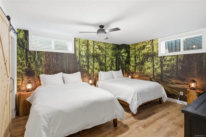 Live the ultimate island lifestyle in sought-after San Pareil, a friendly seaside community steps from sandy beaches, forest trails, the Englishman River and Estuary, Rathtrevor Provincial Park, and minutes to downtown Parksville. On a bright corner lot, this beautifully updated home offers 5 bedrooms, 3 bathrooms, and 2 kitchens, ideal for multi-generational living. Features include hot water on demand and radiant in-floor heating in the main kitchen and two bathrooms for year-round comfort. Extensively updated with new flooring, board and batten siding, windows, and a new septic system, it is move-in ready. Enjoy two private landscaped yards, perfect for entertaining, plus two hot tubs. Ample parking accommodates guests, or RVs