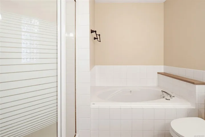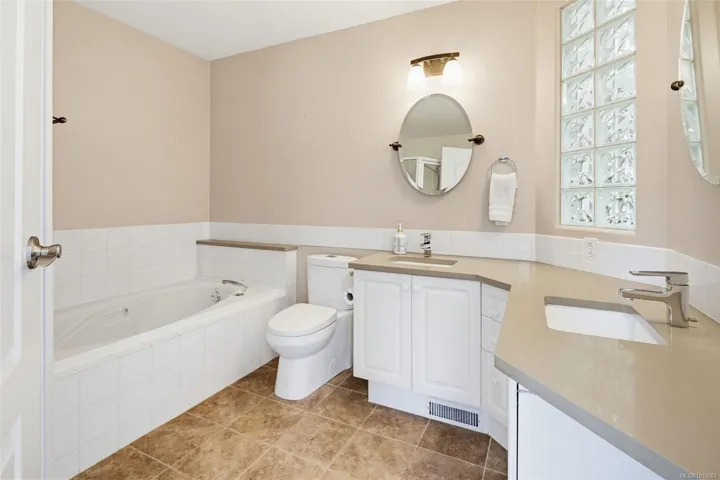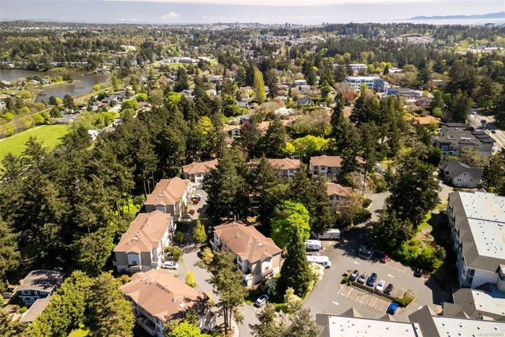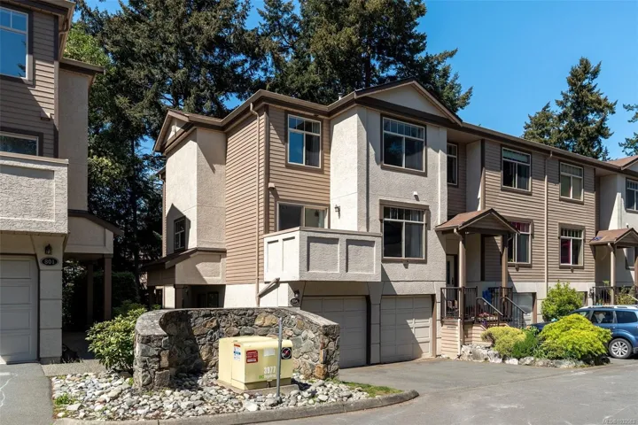 Here is the View Royal townhome you have been waiting for! This spacious 3 bed 4 bath, end unit, is set in a beautiful, peaceful complex with older growth trees towering around it. With a large 2 car garage & space for 2 vehicles in the driveway, this is great family home! Enter into a large tiled foyer w/ access to the family room through double french doors (could be used a 4th bedroom), 2 pc bath & patio access. Second level features a large living area, w/ gas fireplace & balcony access. A spacious kitchen, large dining area w/ hardwood flooring, rear balcony access, & 2 pc bath complete the floor. The third floor houses all bedrooms & laundry. The sprawling primary bedroom features walk-in closet & an ensuite with dual sinks, soaker tub & shower. 4 pc bath completes the upstairs along with a skylight over the stairs to brighten up the space. This home is in close proximity to schools, all amenities, hospital, & the ocean! This property has a lot to offer, & so much potential!