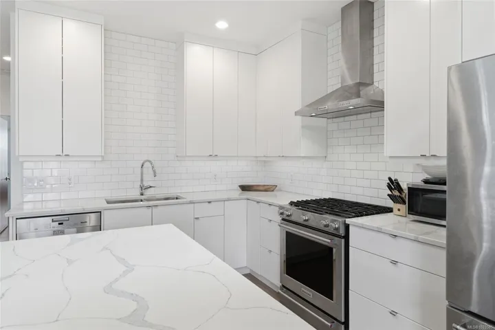 A one-of-a-kind offering in one of Nanaimo’s best neighbourhoods. Thoughtfully crafted with a custom architectural vision, offering a perfect blend of style and functionality. From the moment you step inside, the home showcases a clean, modern feel with high-end finishes throughout. The main living area is designed to impress, featuring soaring 15-foot ceilings and large windows that flood the space with natural light, creating an open and welcoming environment. The layout flows effortlessly into a beautifully appointed kitchen with upscale stainless steel appliances, quartz countertops, and a spacious island ideal for gathering and entertaining. This 3 bed 3 bath no strata fee home is sure to impress and won’t last long!