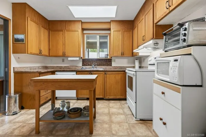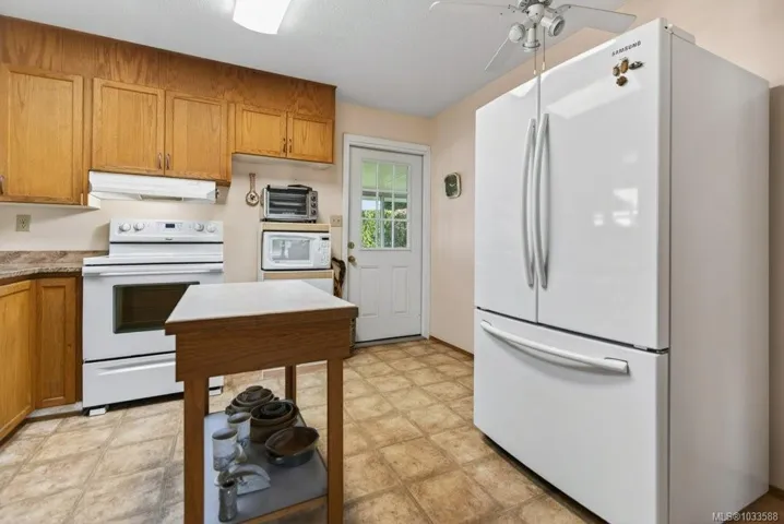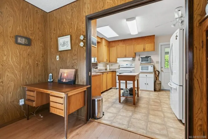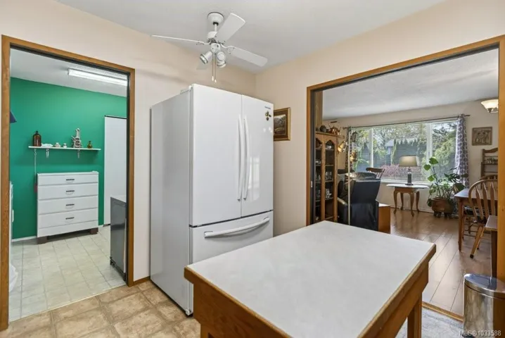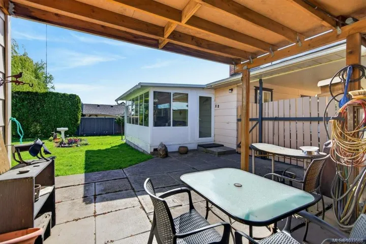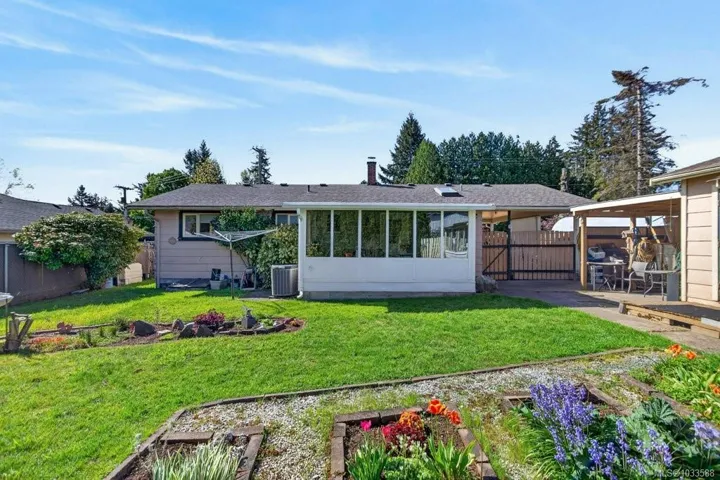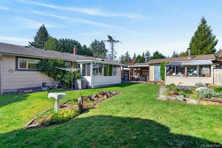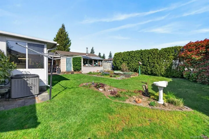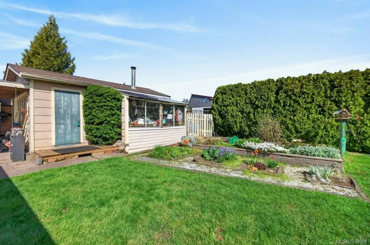 Conveniently located 2-bedroom, 1.5-bath rancher offering easy one-level living. Ideal for first-time buyers, retirees, or investors, this well-designed home is within walking distance to the Comox Recreation Centre, schools, and everyday amenities. The bright kitchen features quartz countertops and ample storage, flowing into comfortable living space. A heated sunroom at the back provides year-round enjoyment with peaceful garden views. Generous laundry, pantry, and storage areas add to the home’s practicality. Outside, enjoy a private, fully fenced yard complete with a workshop for tools or hobbies. Efficient heat pump provides year-round comfort, plus RV parking for added convenience. A great opportunity