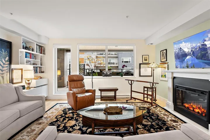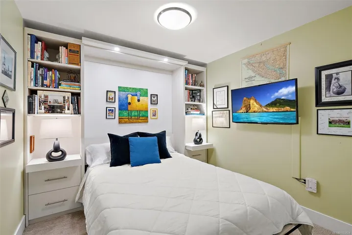 This unit offers one of the best layouts in the building—quiet, private, and naturally insulated from outdoor temperature extremes. The spacious entry opens into an executive bungalow-style home with 1,310 sq ft of living space, including three bedrooms, two bathrooms, and a bright open-concept kitchen, dining, and living area. A huge 359 sq ft covered deck adds year-round outdoor living space, perfect for gardening, lounging, and entertaining. Features include a custom Murphy bed in the guest room, professionally designed closet organizers, and a stylish built-in display/storage unit in the living room. Extra storage is found in the ensuite laundry room plus a convenient locker down the hall. The same floor hosts a large amenities room with kitchen, BBQ, and lounge. Parking and secure bike storage included.The Cameo, built by Casman Properties, is one of Sidney’s most sought-after and well-managed buildings, close to shops, dining, services, parks, and the waterfront—a must see!