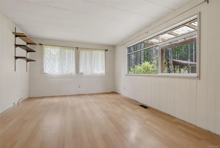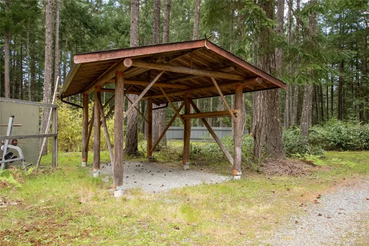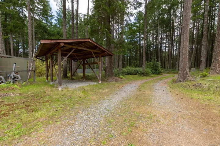 This private 5-acre property offers space, quiet, and future potential in the heart of Gabriola Island, just 20 minutes by ferry from Nanaimo and close to beautiful beaches and trails. About one-third of the land is cleared into a level lawn framed by trees, while the remainder slopes into forest with a seasonal creek, creating excellent privacy. With road frontage on two sides, the parcel offers flexible access and layout options. The detached garage is fully insulated with 220 power, underground service from the pump house, a full bath, and rough-in plumbing for a future kitchen. It works well as a workshop, studio, or could be transformed in to extra living space. An older mobile home is included for use while you plan and build. The drilled well (12 GPM) and existing septic field add valuable infrastructure. A unique chance to secure a well-located acreage with key services already in place.