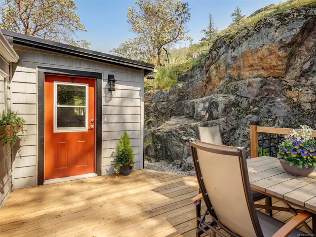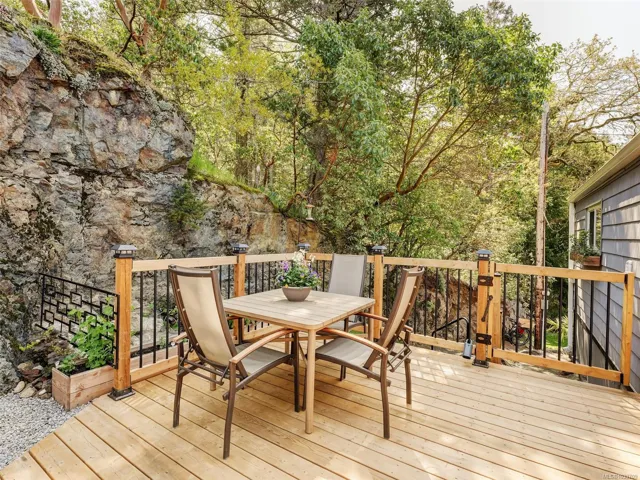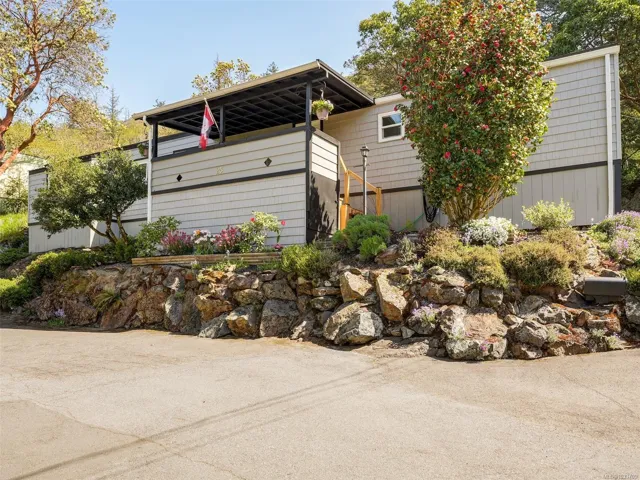 Tucked into a peaceful natural setting, this beautifully updated 2 bed, 1 bath manufactured home offers comfort, privacy, and lifestyle in the desirable Arbutus Ridge Estates Park. Extensive upgrades include windows, polymer siding, decking, landscaping, bathroom, plumbing, interior and exterior paint, appliances, acoustic panels, and flooring—making it truly move-in ready. Wake up in the primary bedroom to birdsong and views of the stunning arbutus trees of Mill Hill. Enjoy your morning coffee on one of three decks, take in sunset views of Bear Mountain from the dining area, or relax while BBQing on the private back deck surrounded by forest and rock. The heat pump will keep you warm in the winter and cool in the summer. Step out your door to hike Mill Hill or access the Galloping Goose Trail for easy bike trips to Langford, Victoria, and Thetis Lake. A serene retreat with unbeatable outdoor access.