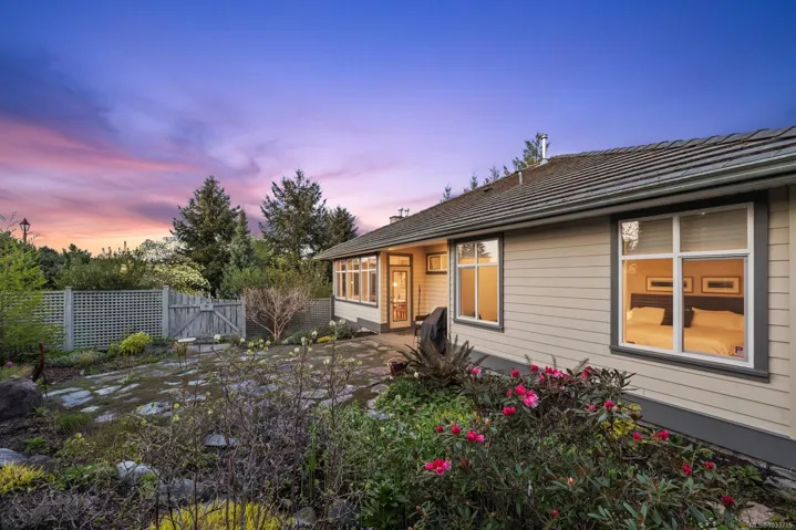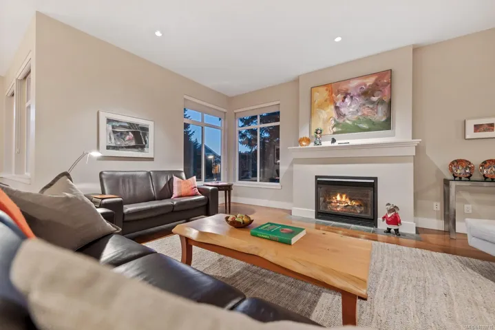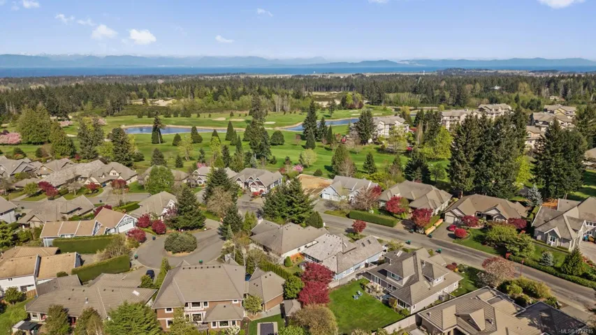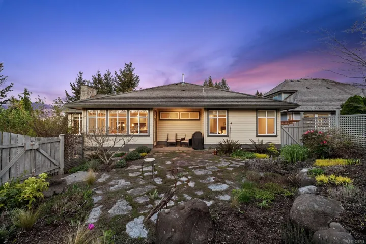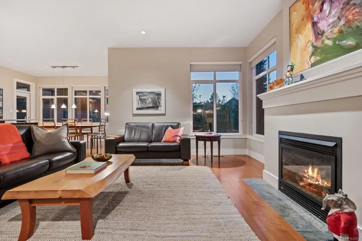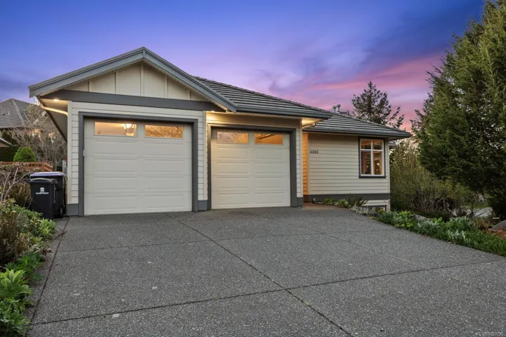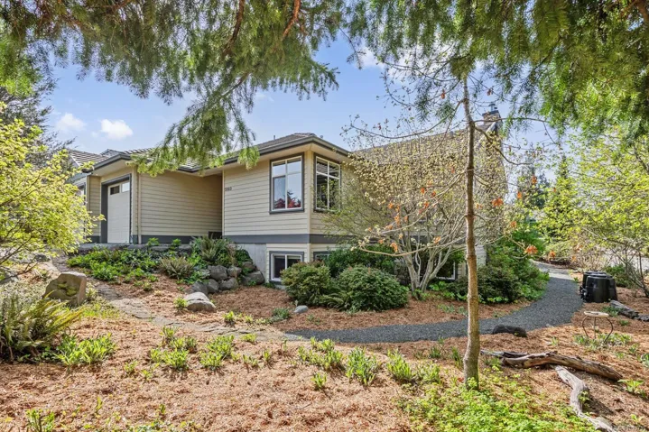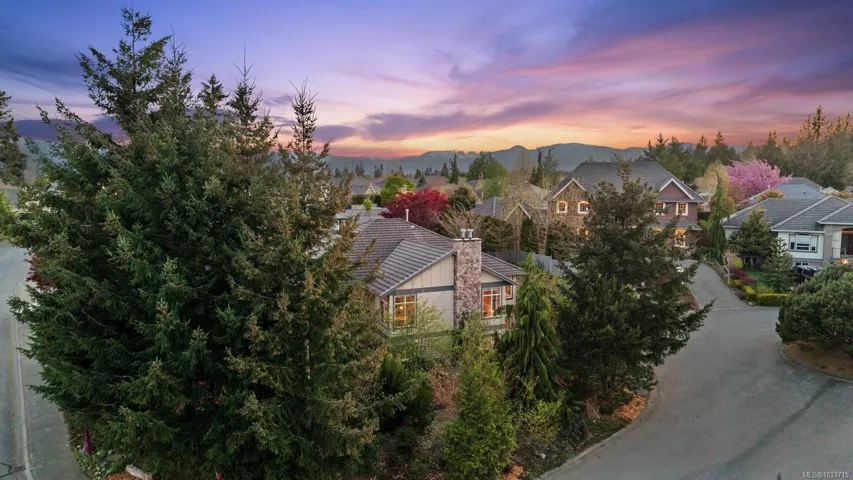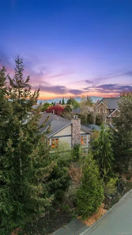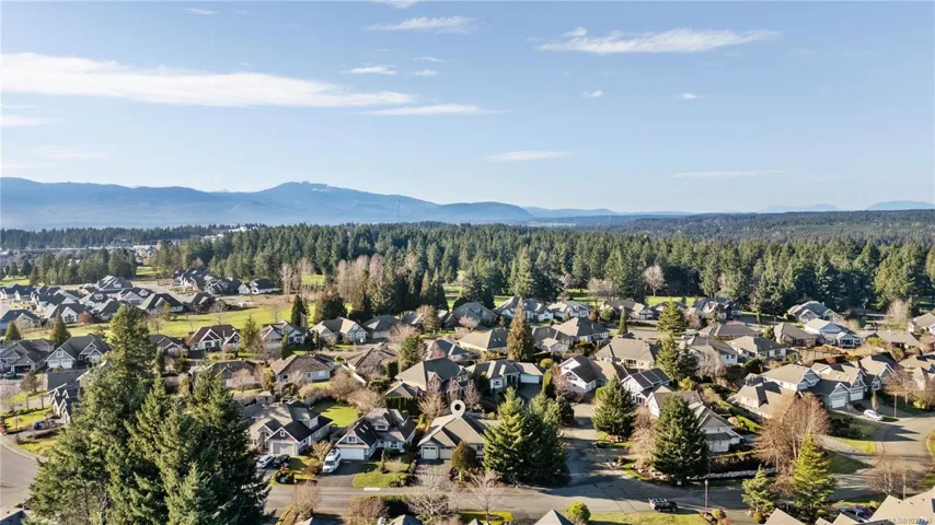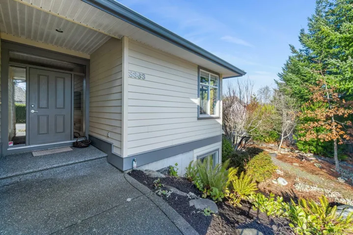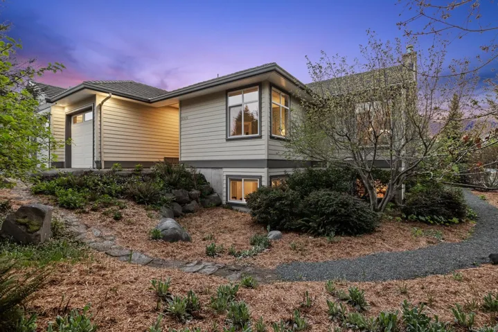 Stylish & thoughtfully designed, this 2945 sqft, 4 bed, 3 bath + den, custom home offers functionality, with a mid-century modern feel. Light-filled living on the main floor, including open-concept kitchen, quartz counters, gas range, & custom cabinetry. A window-lined dining area opens to a private courtyard. The living room is anchored by warm hardwood floors & a gas fireplace. The large primary features a generous walk-in & ensuite with double sinks. An office/den, second bedroom, laundry, & double garage are all located on the main floor. Down, a spacious family room for guests & media is complemented by a gas fireplace, 2 beds, bathroom & utility/storage area. Set on an elevated corner lot, you have a lofty outlook with privacy. Landscaped with native plants, designed by a master gardener with deer-resistant plants, rock features, mature trees, & river rock paths- creates a Gulf Island-inspired atmosphere. Next to the Crown Isle golf course, this property is a must see!