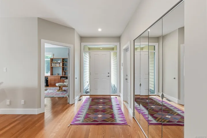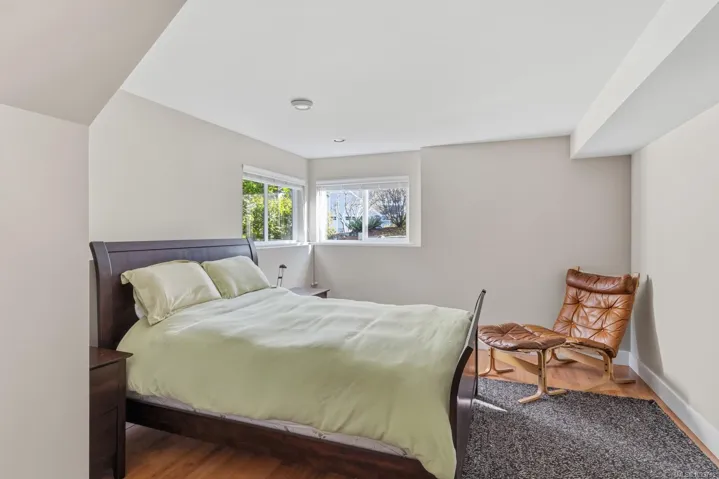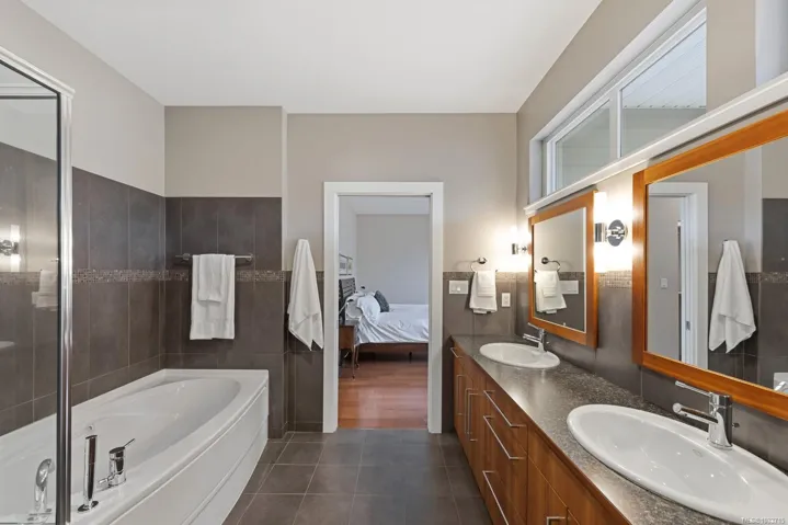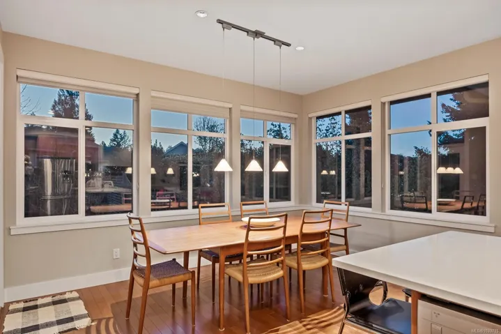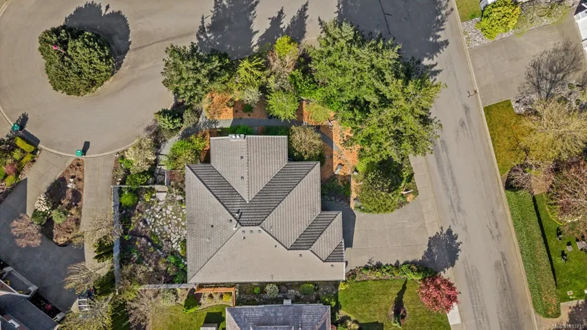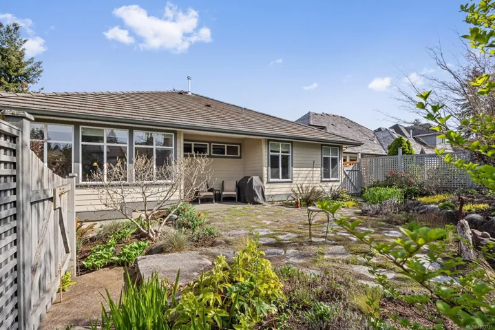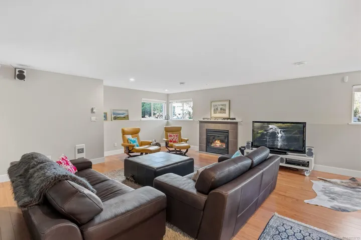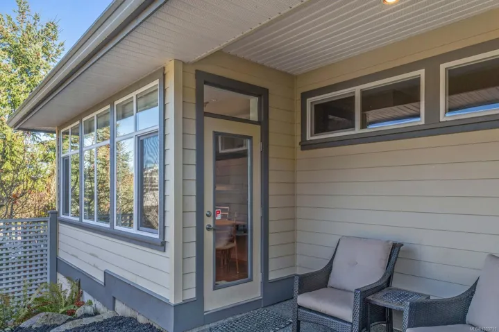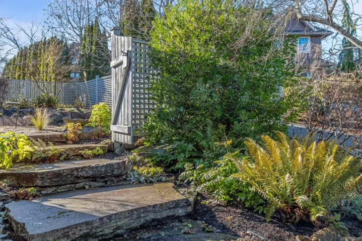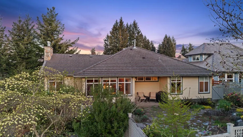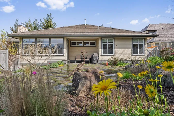 Stylish & thoughtfully designed, this 2945 sqft, 4 bed, 3 bath + den, custom home offers functionality, with a mid-century modern feel. Light-filled living on the main floor, including open-concept kitchen, quartz counters, gas range, & custom cabinetry. A window-lined dining area opens to a private courtyard. The living room is anchored by warm hardwood floors & a gas fireplace. The large primary features a generous walk-in & ensuite with double sinks. An office/den, second bedroom, laundry, & double garage are all located on the main floor. Down, a spacious family room for guests & media is complemented by a gas fireplace, 2 beds, bathroom & utility/storage area. Set on an elevated corner lot, you have a lofty outlook with privacy. Landscaped with native plants, designed by a master gardener with deer-resistant plants, rock features, mature trees, & river rock paths- creates a Gulf Island-inspired atmosphere. Next to the Crown Isle golf course, this property is a must see!