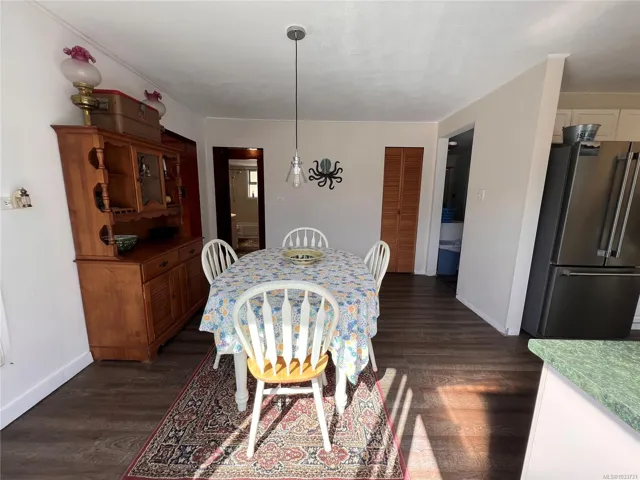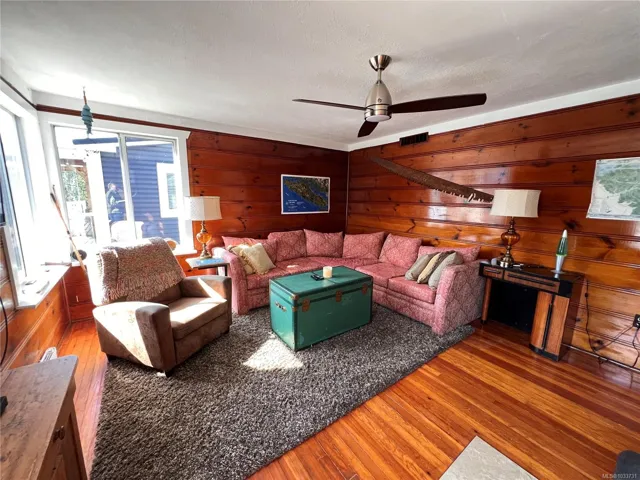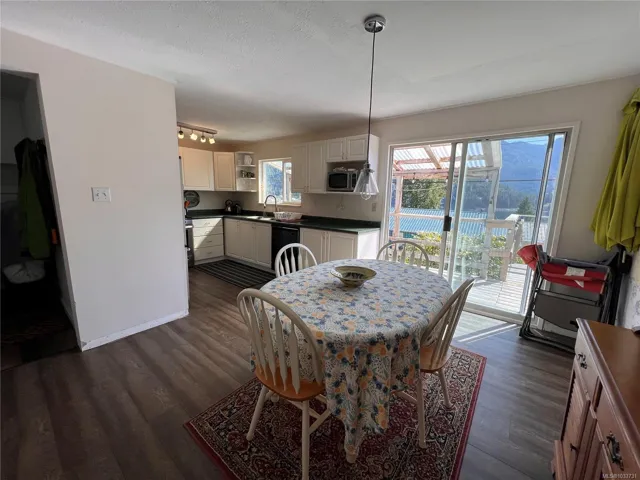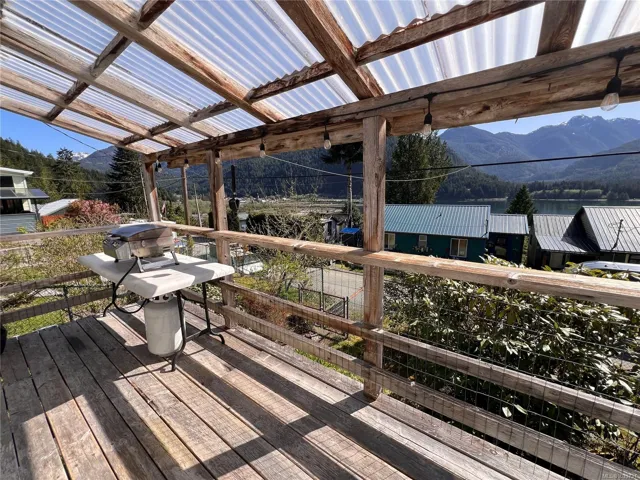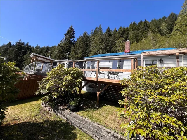 Sweet hillside bungalow with ocean views in the Village of Tahsis. The 910sqft home offers all living space on one level, with two bedrooms and a 3 piece bathroom. The kitchen, eating area and living room look over the front garden with ocean views. A sliding glass door provides access from the kitchen to the large deck, partially covered to allow for year-round outdoor enjoyment. The kitchen features stainless steel appliances with a propane stove. The living room has a wood stove for added ambiance and warmth. The living room floors are original wood, and the walls in this room as well as in the bedrooms are wide, horizontal wood tongue and groove boards. At the front of the home is an unfinished storage space, created by the slope of the land and accessed by a door under the deck. In a residential neighbourhood above the Tahsis oceanfront, this small lot has been nicely terraced and features mature rhododendrons. Fenced on three sides, with paved laneway access in the back.