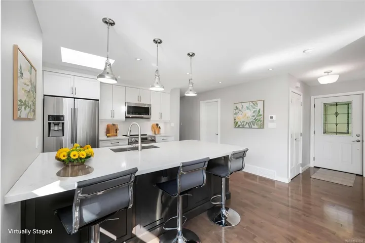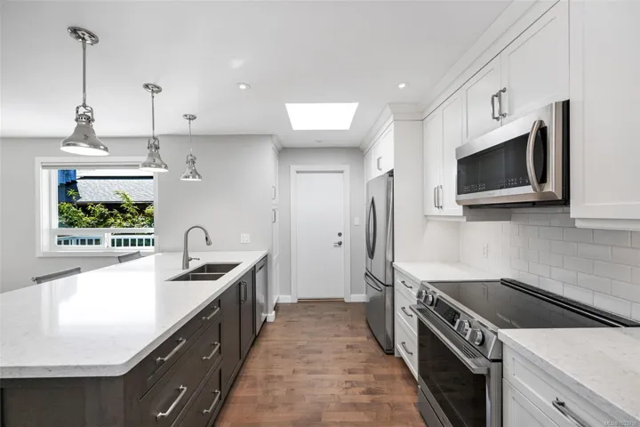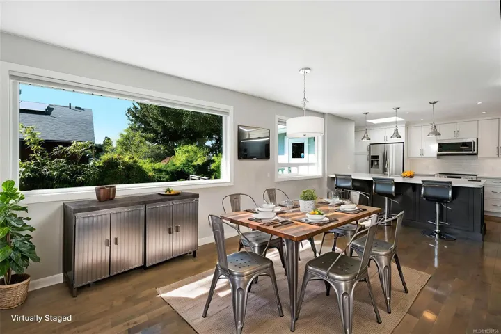 Open House Saturday 1- 3 pm! Updated 6-bed, 4-bath home on a ¼-acre corner lot! Bright, beautifully renovated & move-in ready, this home features an open-concept layout from the modern kitchen to the dining and living areas—ideal for family living & entertaining. Enjoy great natural light and views throughout. The kitchen offers Silestone quartz counters, bar seating, & newer appliances. Upgraded to 200-amp service, with a double garage plus 100-amp sub-panel—perfect for a workshop. The lower level has a fully updated 2-bed suite and 1-bed in-law suite. Nicely landscaped yard with garden beds & lots of parking – including RV space. Quiet location near top schools, BC Transit, U-Vic, University Heights shopping, and Saanich parks & facilities. Flexible, beautiful, income-generating, and an exceptional value!